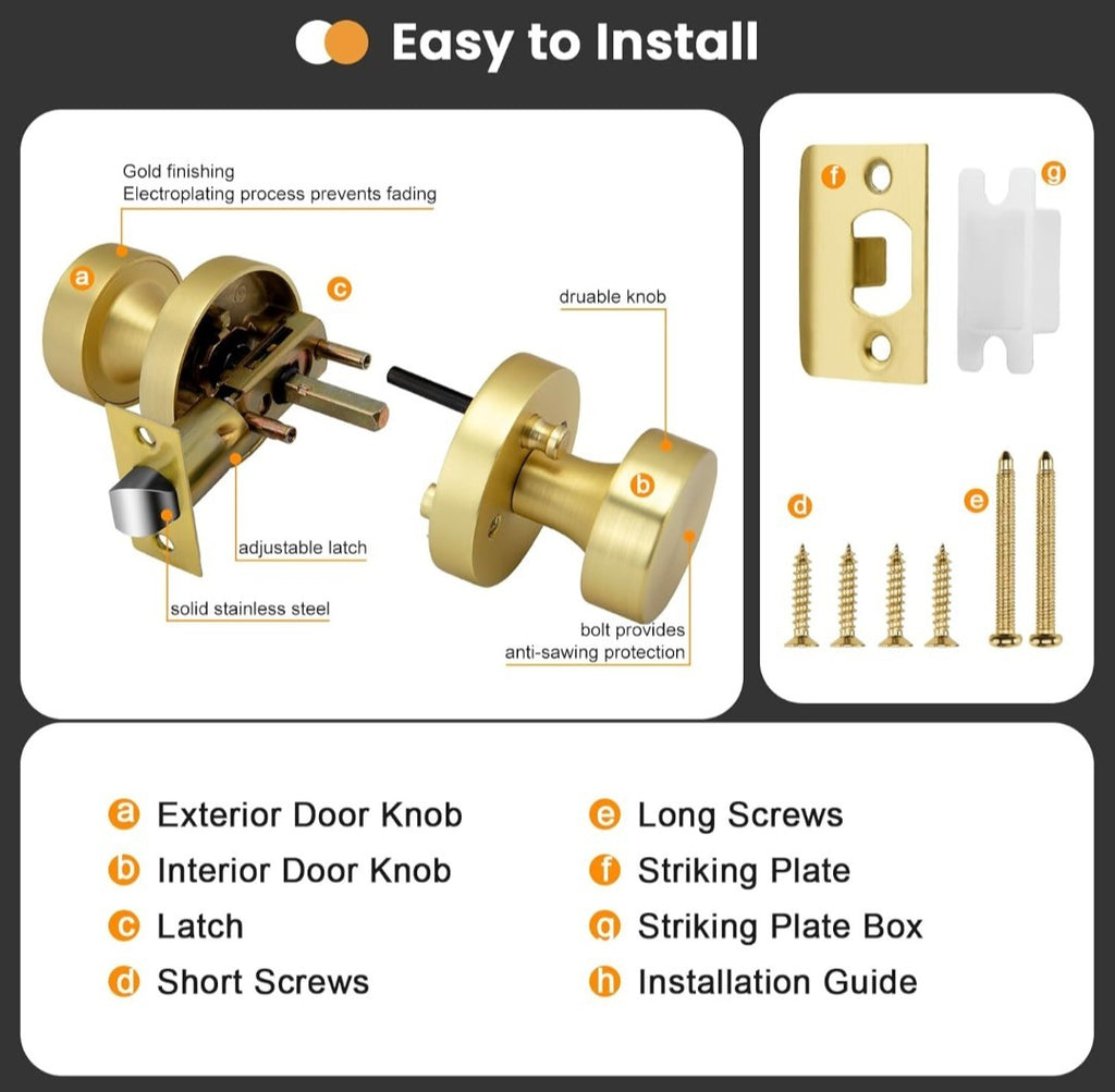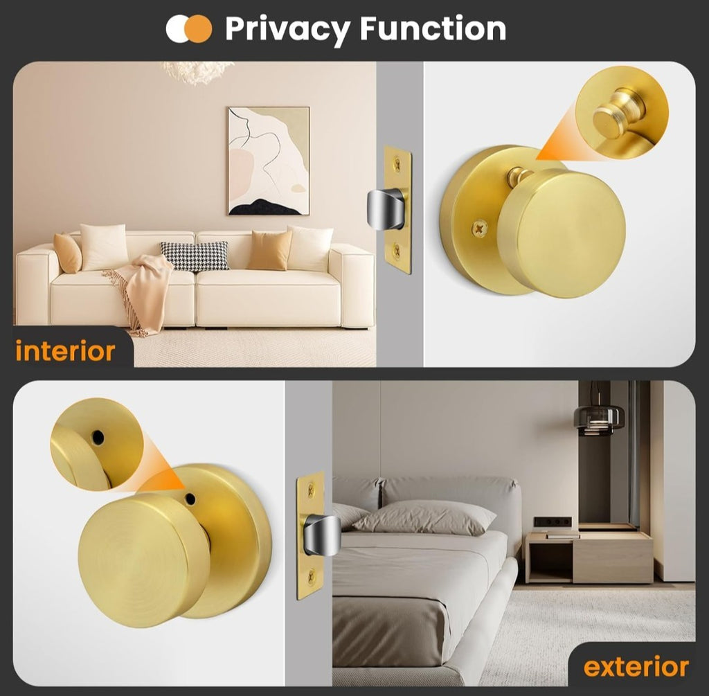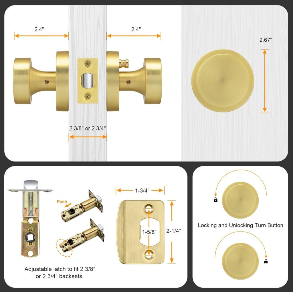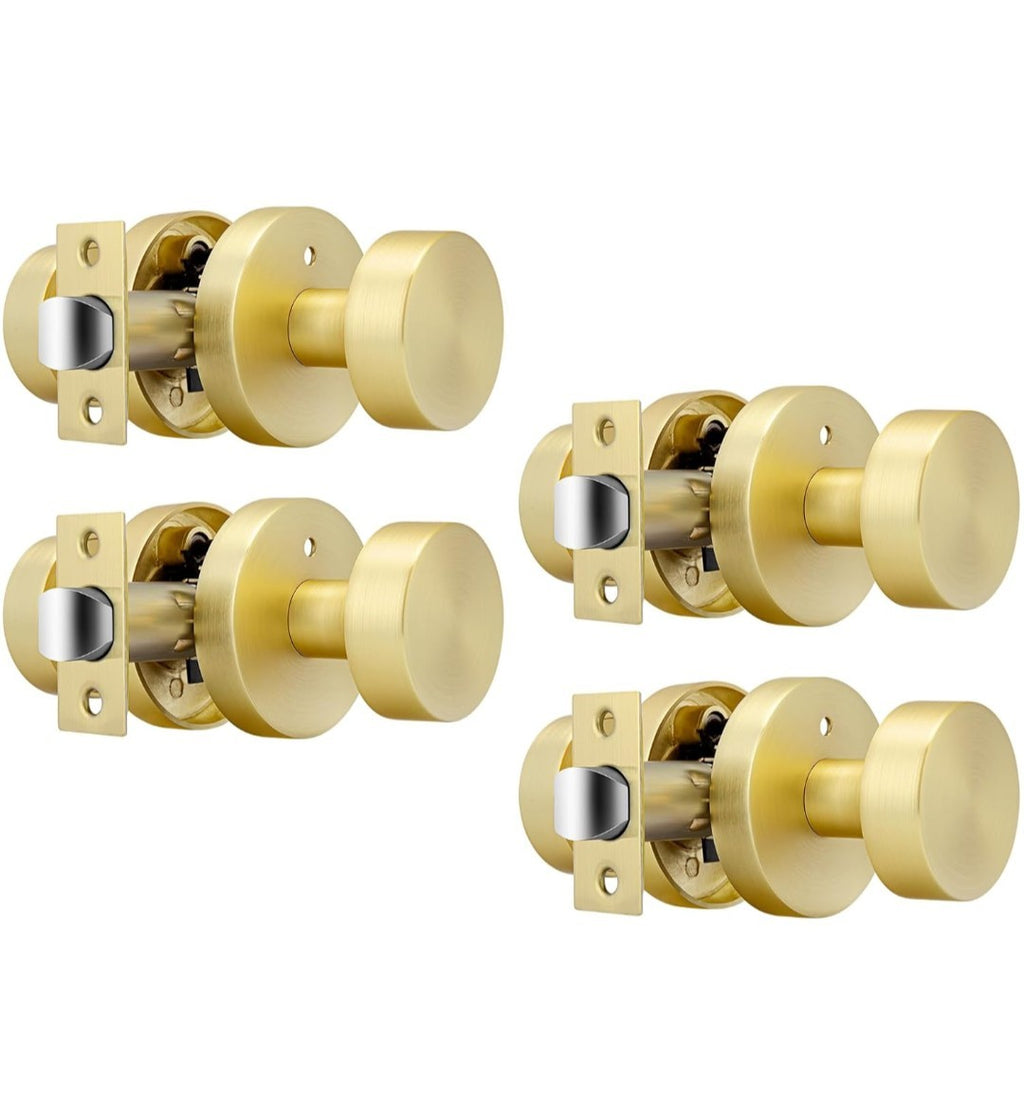 The Goldenwarm 4 Pack Gold Door Knobs are round ball-shaped knobs with a brushed gold finish, suitable for bathroom doors. Made of stainless steel, these privacy knobs are universal/reversible for both left and right-handed doors. They come with hardware and fixings supplied, making installation easy. With a modern and elegant design, these door knobs add a touch of luxury to any home improvement project.