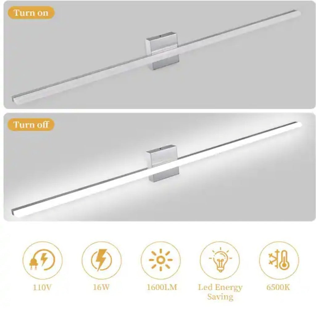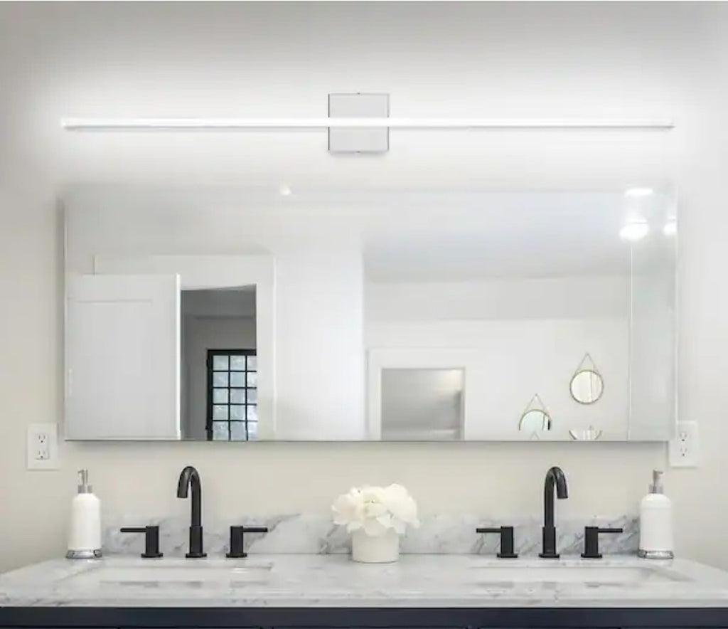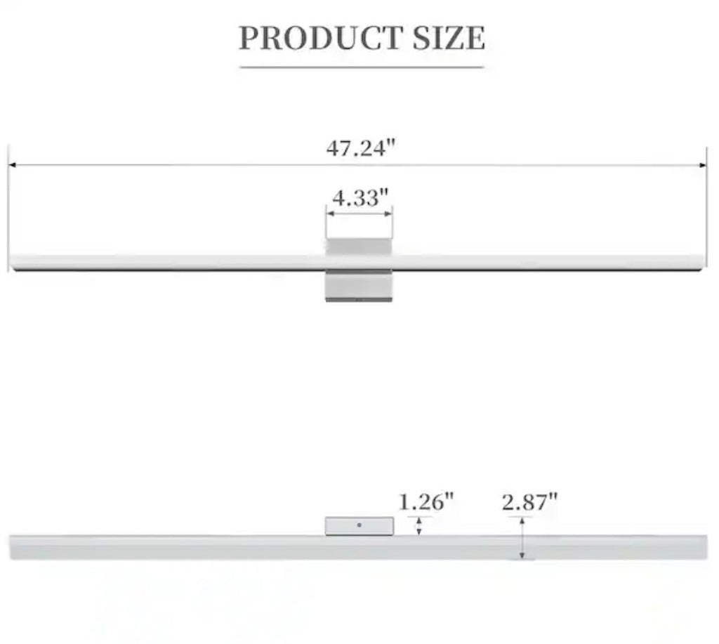 The 48 in. 1-Light 24-Watt 6500K Cool White Integrated LED Bathroom Vanity Light Bar by LamQee is a modern and stylish lighting fixture designed for indoor use in bathroom vanities. The light bar emits cool white light downwards and has a dimmable feature, providing customizable lighting options. With a power source of corded electricity and LED technology, this vanity light is energy-efficient and designed for the 21st century era. It is suitable for adults and has an IP44 rating for water and dust resistance, making it a practical and practical lighting solution for any modern bathroom space.