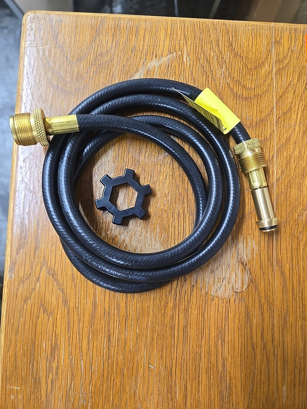 The 5' Propane Hose Assembly with Handwheel 8B by Mr. Heater is a replacement part designed for outdoor heating, cooking, and eating. The black hose assembly is specifically made for use with propane grills, providing a convenient and reliable solution for powering your outdoor cooking needs. With a length of 5 feet, this assembly offers flexibility in positioning and accessibility for various outdoor cooking setups. Perfect for those looking to replace or upgrade their existing propane hose, this high-quality Mr. Heater product is a practical and essential addition to any outdoor cooking equipment.