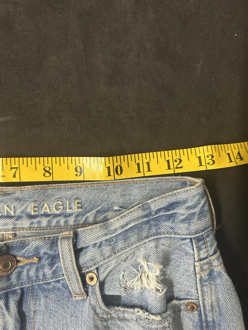 The American Eagle High Rise Ripped Mom Jeans in Women's Size 00 Short offer a trendy and comfortable fit for women. Made from a durable denim fabric with a relaxed fit, these jeans feature a mid-rise waist and a 5-pocket design. The classic blue color and solid pattern make them versatile for all seasons, while the ripped accents add a touch of style. With a 25-inch inseam and 25-inch waist size, these American Eagle Mom Jeans are a fashionable choice for everyday wear.