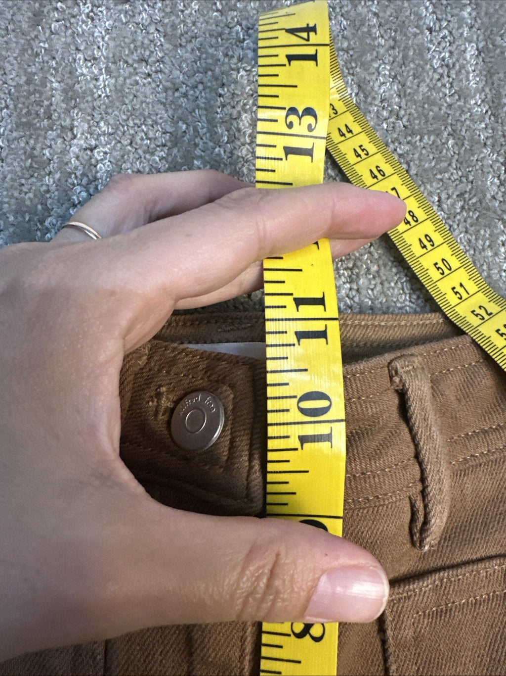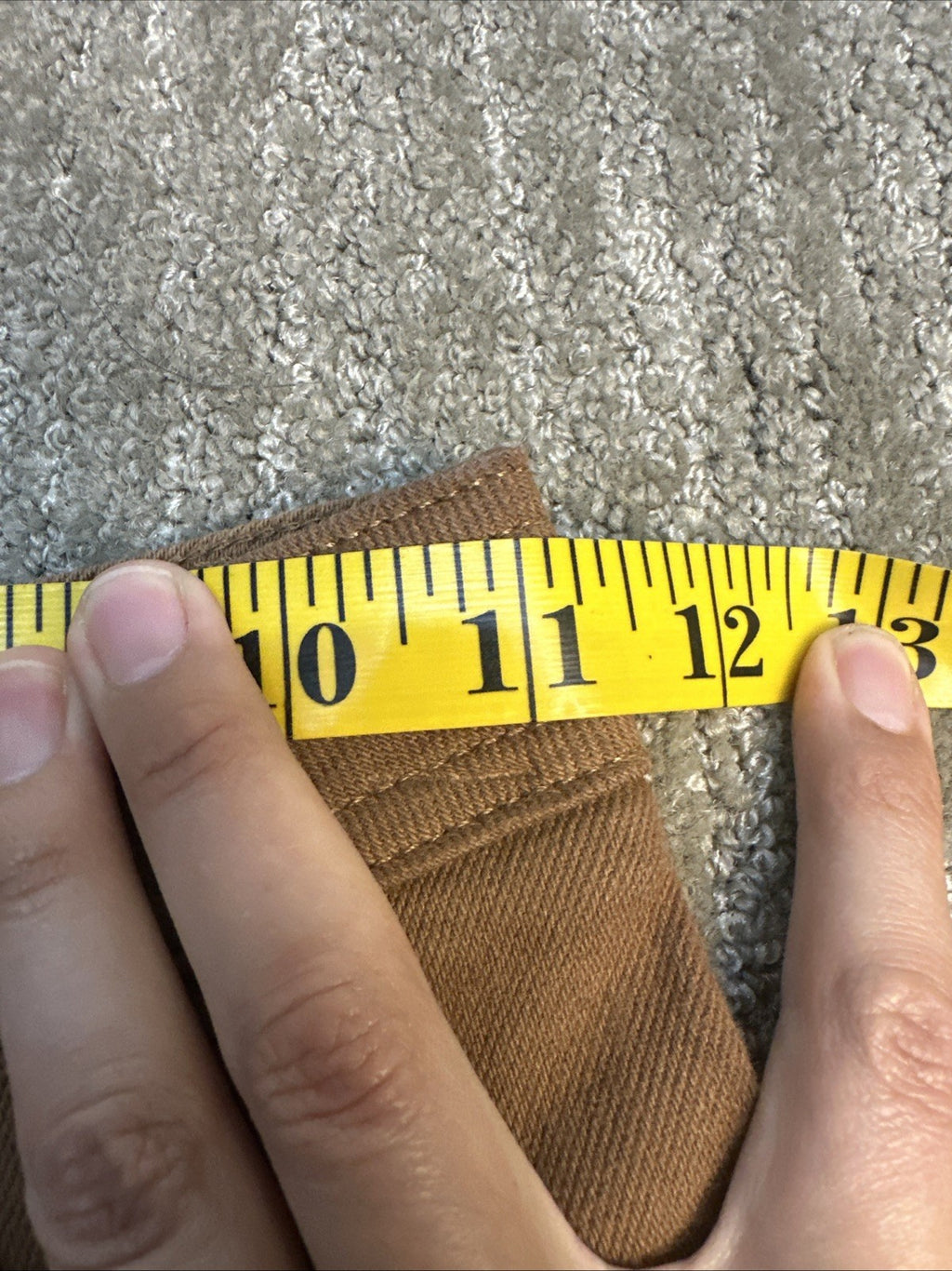 The Aritzia Wilfred Free Riley Carpenter Pants in gold/brown, size 00, are versatile and stylish for casual occasions. Made from cotton, these pants feature a solid pattern with a high rise and flat front. With a waist size of 22 inches and an inseam of 27 inches, they offer a regular fit and are machine washable. The cargo style and inclusion of pockets add practicality to these pants, making them a fashionable choice for summer, fall, or spring. Rise 10 3/4in