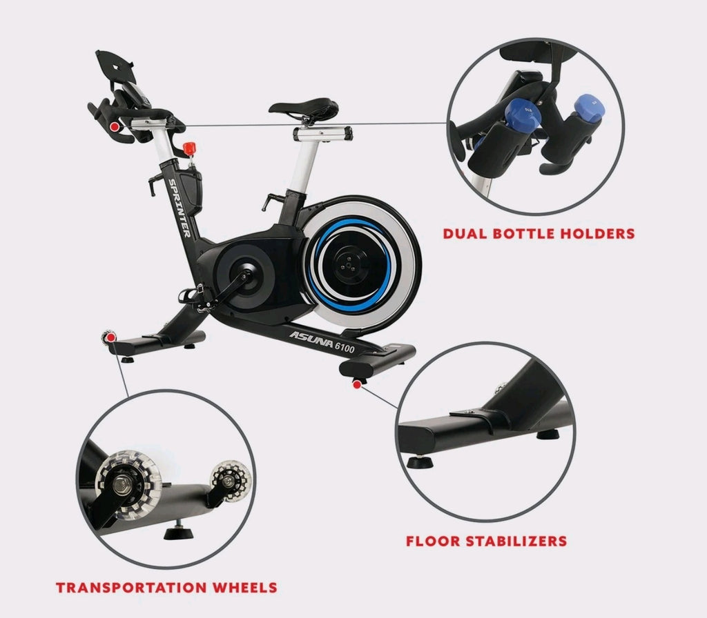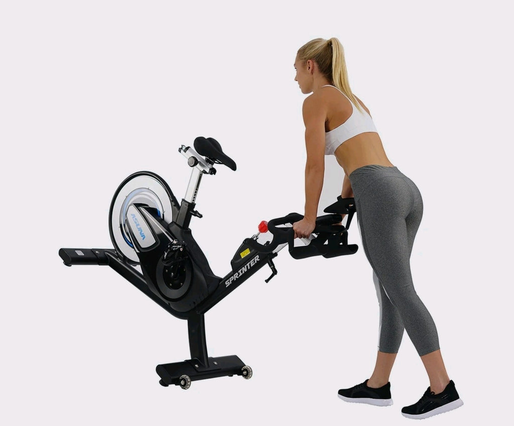 Serious fitness calls for serious equipment with the Asuna 6100 Sprinting Commercial Indoor Cycling Bike. Cycling is a healthy, low-impact exercise that can be enjoyed by people of all ages. Keep water and sweat off of your flywheel. This premium bike comes with a rear drive flywheel that keeps your bike riding like new! Seamlessly monitor your heart rate on the LCD monitor with the pulse sensors (heart rate belt compatible). Place your tablet on the tablet holder and stream your favorite cycle video all while keeping track of your fitness with the LCD monitor that displays time, calories and pulse. Measure your cadence using the RPM function on the monitor.
