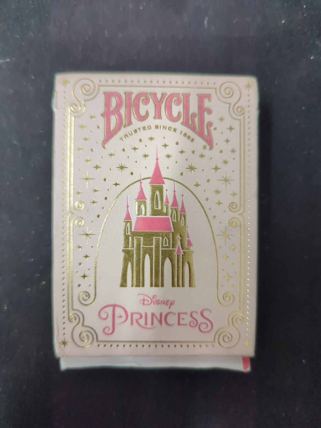 The product is a set of playing cards inspired by Disney Princesses, featuring a pink color scheme. Manufactured by Bicycle in the United States, this collectible item is designed with a pink and feminine theme, making it a fun and whimsical addition to any card game collection. Perfect for fans of Disney Princesses and playing cards alike, this set is sure to bring joy and entertainment to both children and adults alike.