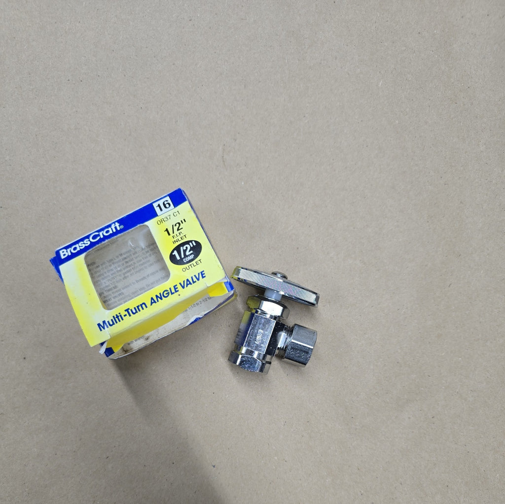 Experience the reliability and durability of the BrassCraft 1/2”Fip X 1/2” OD Comp Iron Pipe Angle Valve #OR37 C #668I120-CI, a premium plumbing component designed for lasting performance. Crafted with high-quality brass and a polished chrome finish, this angle valve offers a sleek, contemporary look while ensuring corrosion resistance and optimal water flow.