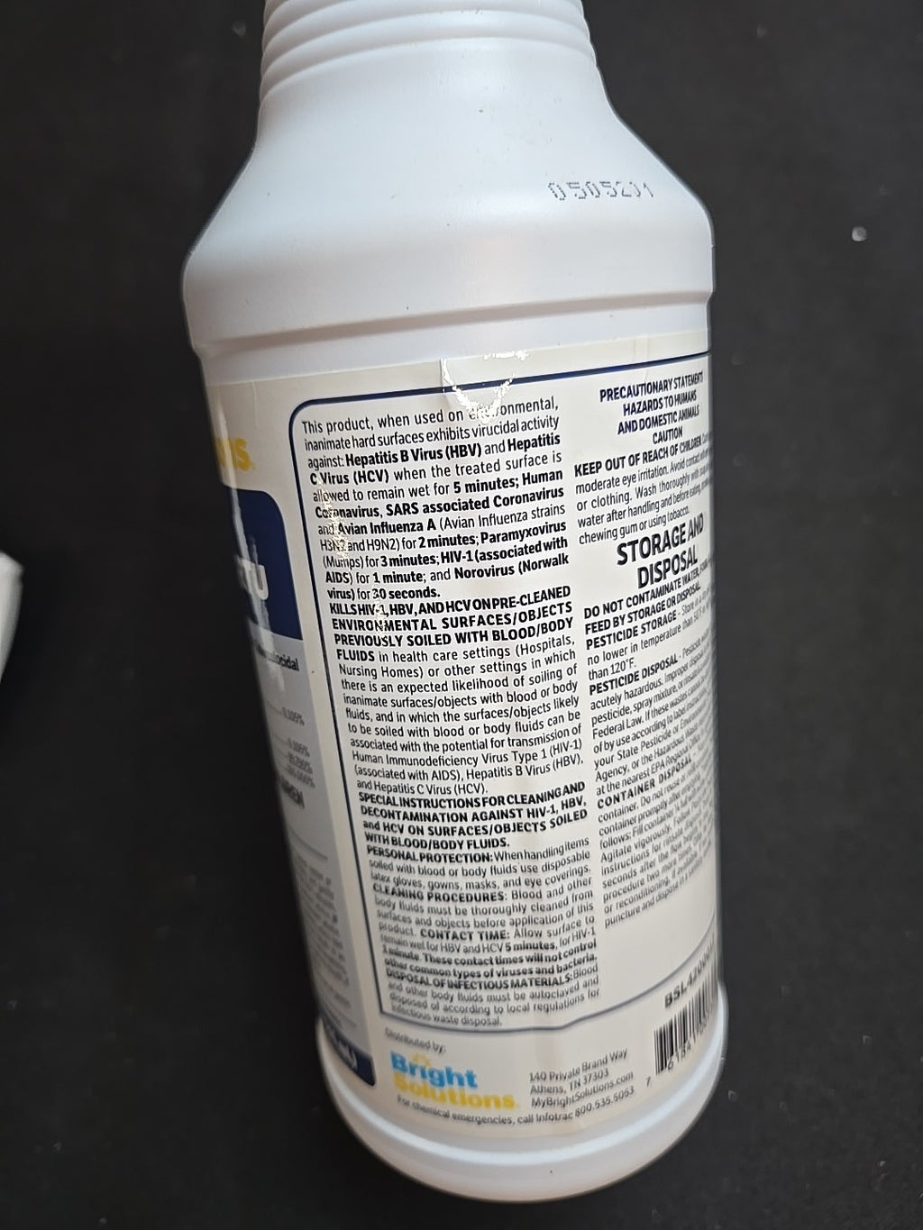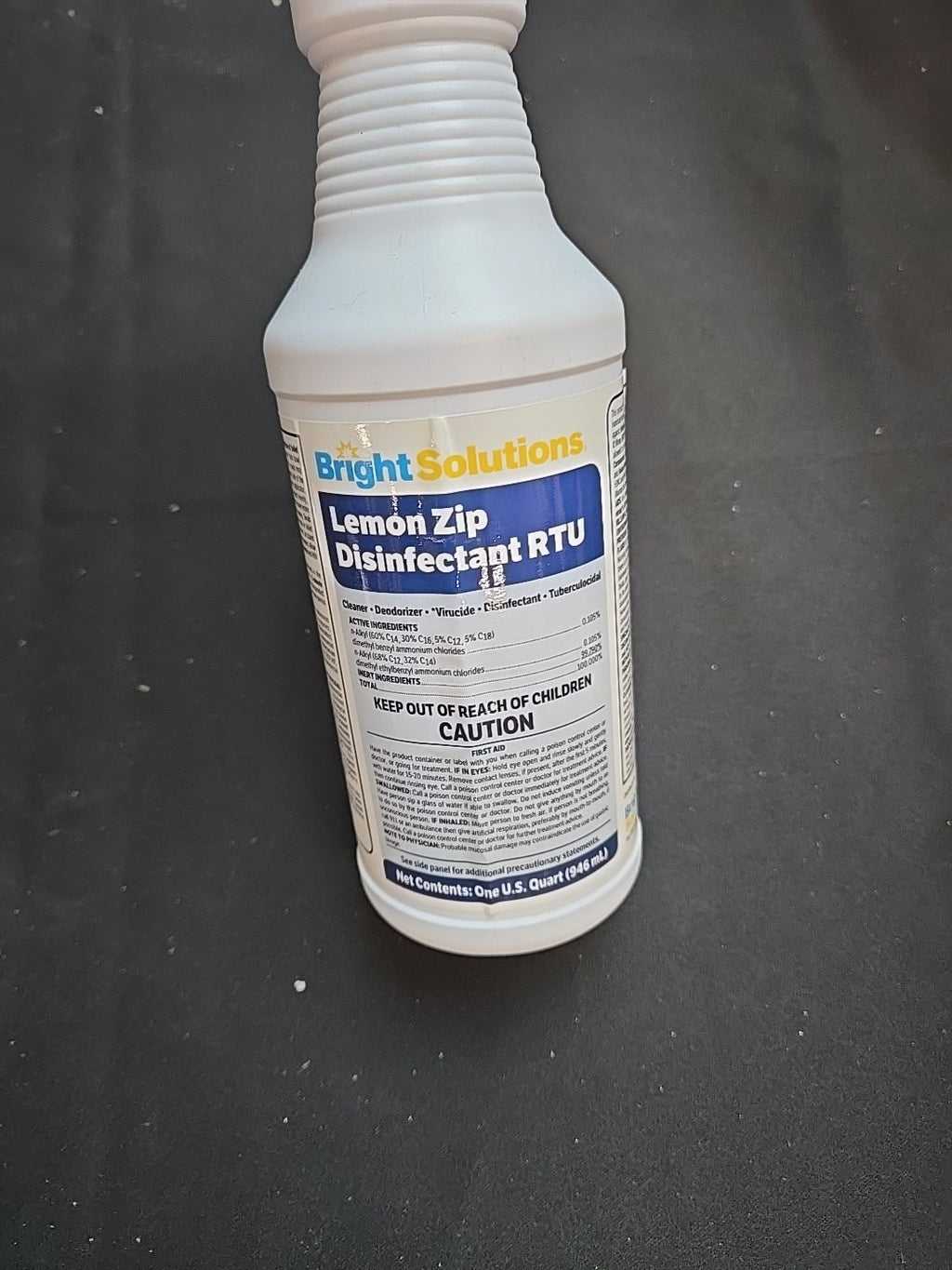 The Bright Solutions Lemon Zip Disinfectant Ready-to-Use (RTU) is a convenient and effective cleaning solution for businesses and industrial facilities. With its EPA registration number 1839-83-75473, this disinfectant meets high standards of quality and performance. The Bright Solutions brand ensures reliability and trust in this essential cleaning product. The lemon scent adds a pleasant aroma while efficiently killing bacteria and viruses, making it a valuable addition to any cleaning and janitorial supply cabinet.