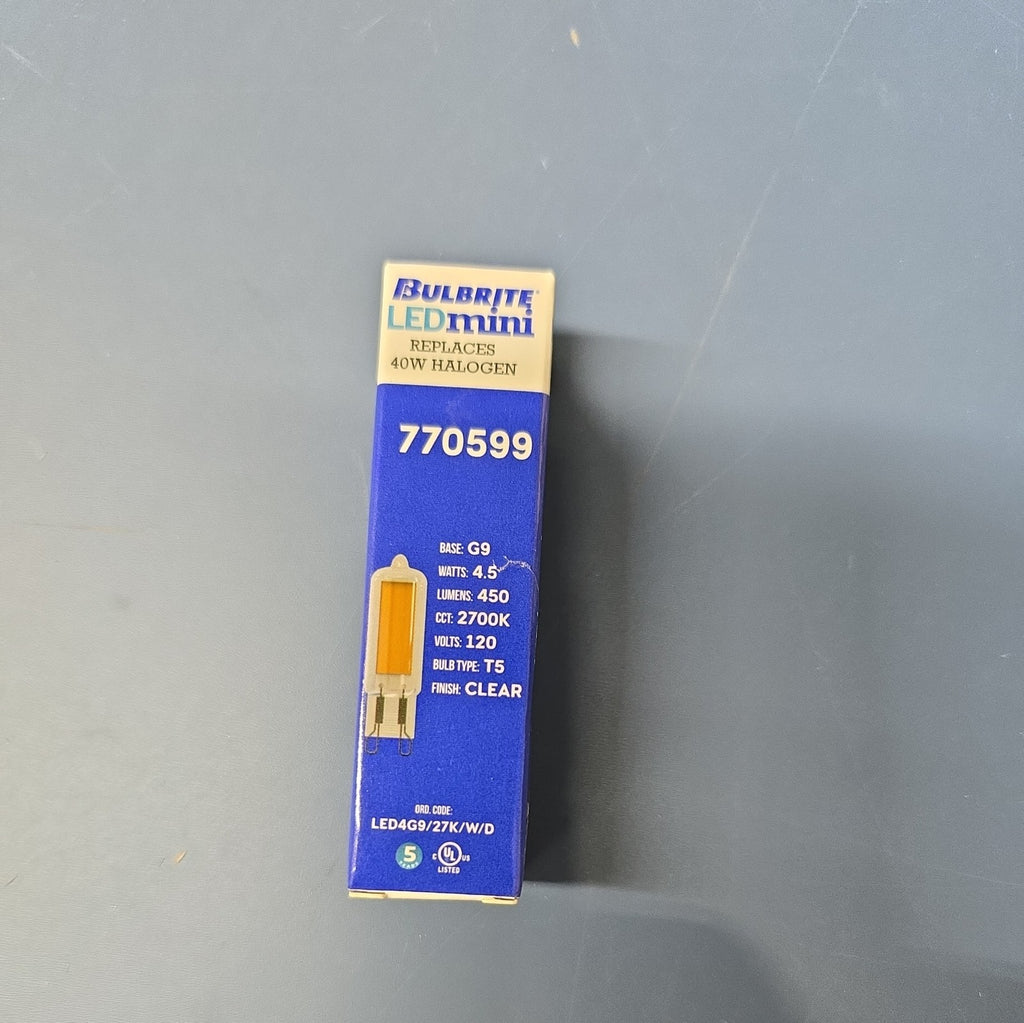 The Bulbrite 40 - Watt Equivalent G9 Dimmable Bi-Pin LED Light Bulb in Warm White is a high-quality lamp bulb designed for home and garden lighting. With a bulb wattage of 40W and a long bulb life hours of 2,000-4,999 hours, this LED light bulb offers warm white light with a clear finish. It is dimmable, making it versatile for various lighting needs, and features a flame tip bulb shape. The Bulbrite brand ensures reliability and performance, while the bi-pin connectors make installation easy. This energy-efficient bulb is a great choice for those looking to reduce their carbon footprint with a product that has an EC Range of A+++ - E.