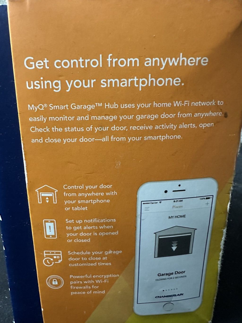 The Chamberlain MyQ Smart Garage Hub in Black offers smartphone control and easy