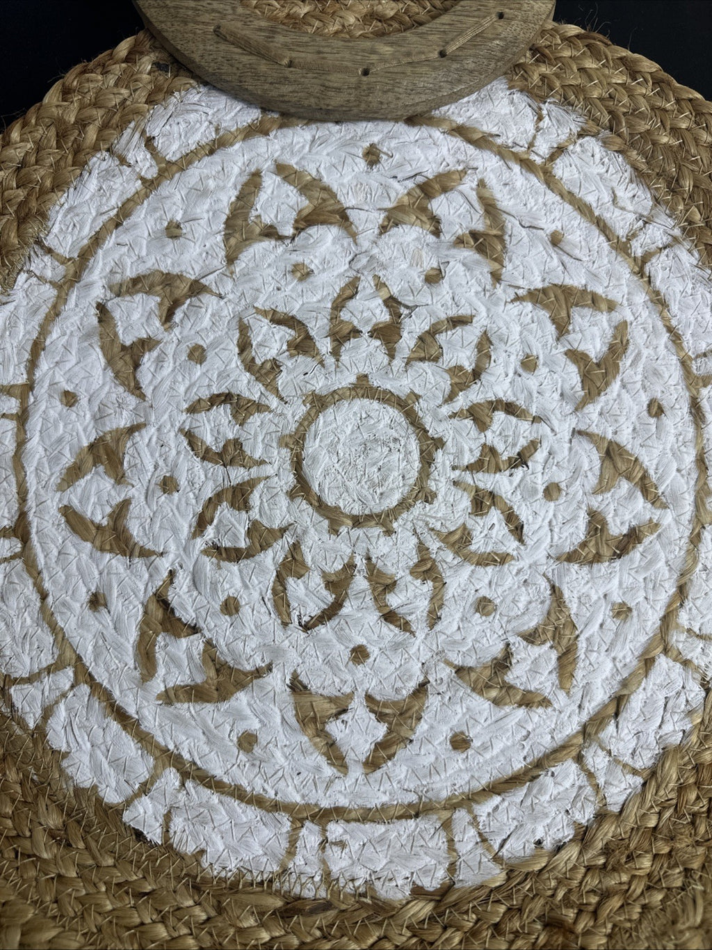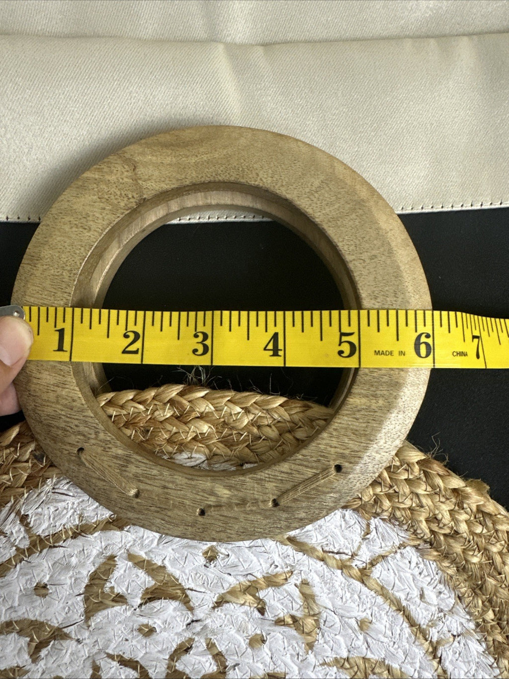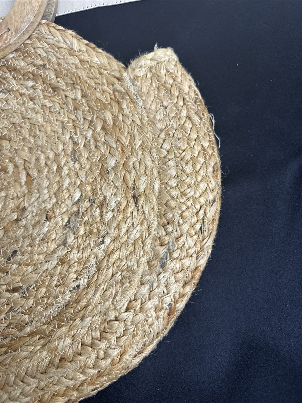 Chloe & Lex Round Woven Bag Wooden Handle White Pattern 8B