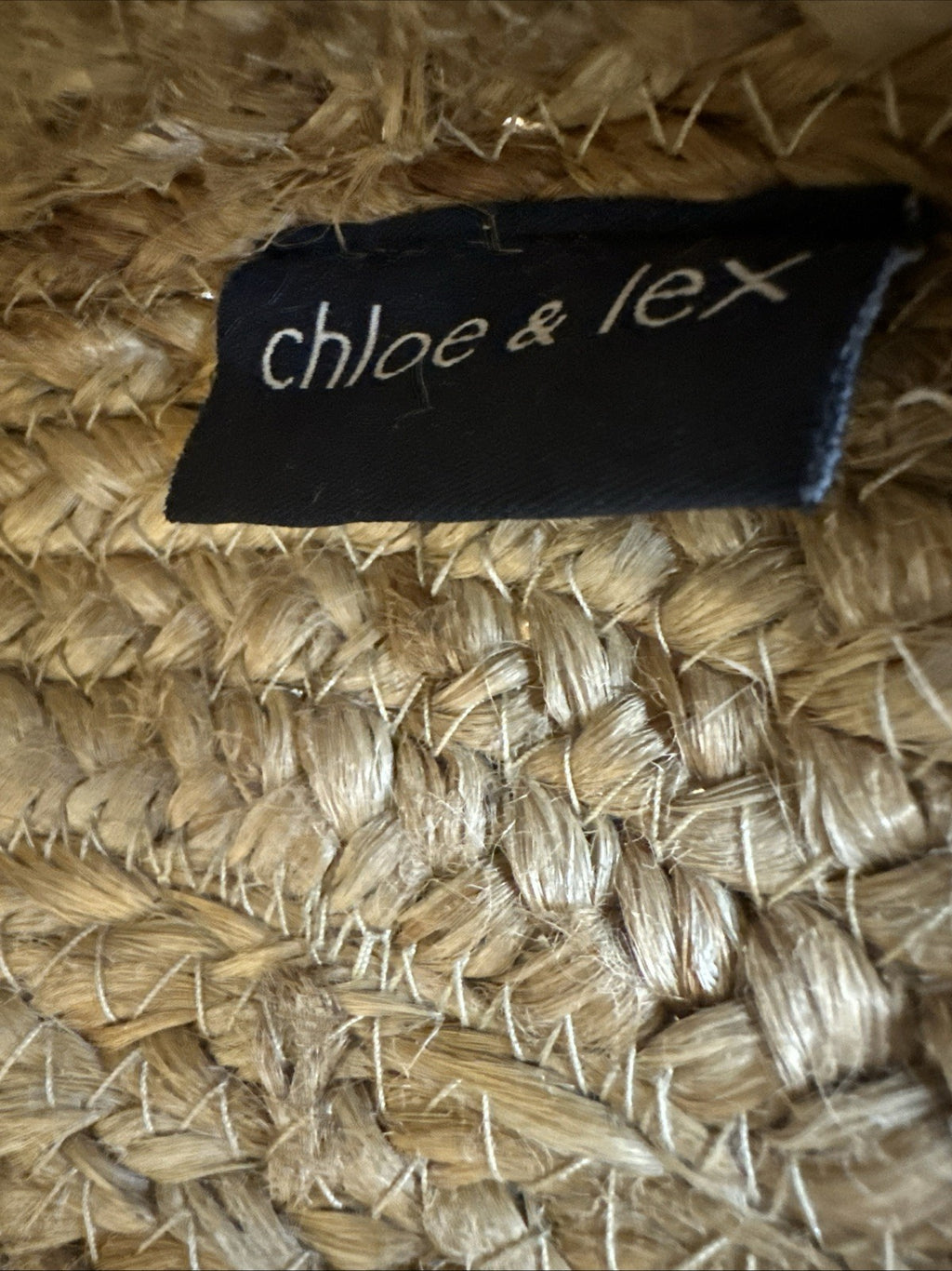The Chloe & Lex Round Woven Bag is a stylish and versatile accessory for women. This medium-sized bag features a unique white pattern woven design with a brown wooden handle, giving it a chic and timeless look. Perfect for travel or casual occasions, this satchel/top handle bag is both practical and fashionable. Crafted from 80% jute and 20% wood, this bag is durable and environmentally friendly. The jute lining adds a touch of comfort, while the double handles make it easy to carry. Ideal for everyday use, this bag combines quality craftsmanship with a trendy design.