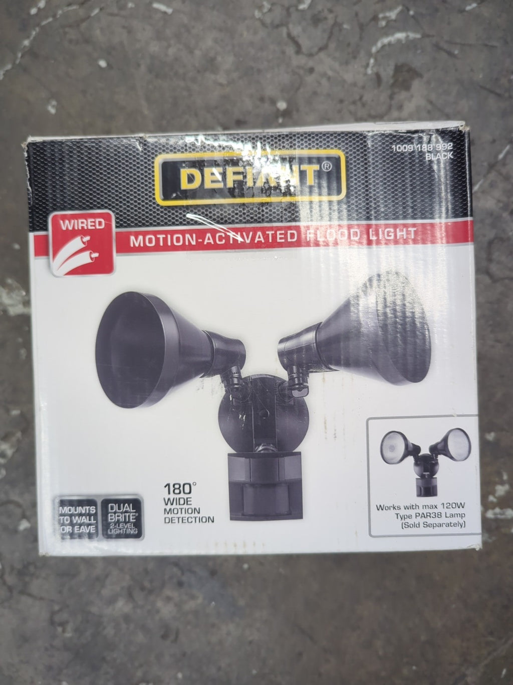 The Defiant Motion Activated Flood Light is a high-quality outdoor lighting solution that provides 180-degree coverage with wide motion detection capabilities. This flood light, powered by the included hardwired installation, features two lights and is designed to be weather resistant, making it ideal for outdoor use in various environments. The sleek black color and brand trust of Defiant ensure a reliable and durable lighting solution for your yard, garden, or outdoor living space.