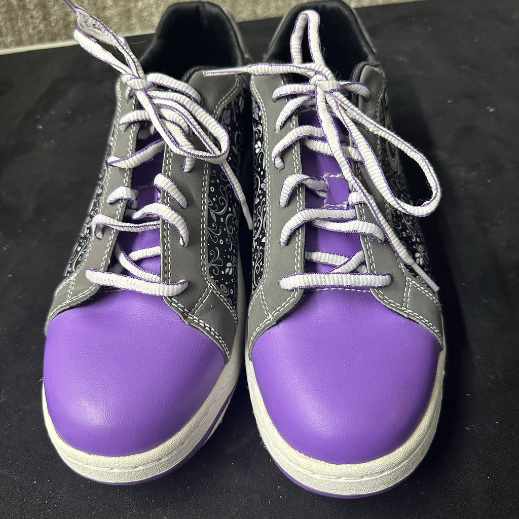 The DEXTER Women Liana Bowling Shoes Sneakers in size 8.5M are designed specifically for bowling performance. Featuring a stylish lilac, white, and purple color combination, these sneakers offer comfort and support for athletes of all skill levels. The Dexter brand is known for producing high-quality footwear, making these shoes a reliable choice for any bowling enthusiast.