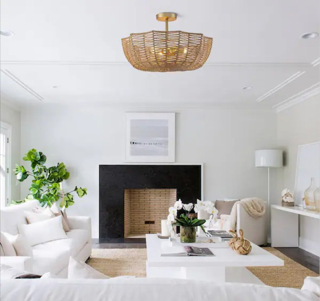 The ELE Light & Decor Marigold 3-Light 21 in. Woven Semi-Flush Ceiling Light is a modern chandelier designed for indoor use. This stylish light fixture features a woven semi-flush design with a drum-shaped shade, perfect for adding a touch of elegance to any room. With LED lighting technology, this chandelier provides a warm and cozy ambiance while also being energy-efficient. The 1-year manufacturer warranty ensures that you can enjoy this beautiful ceiling light for years to come.