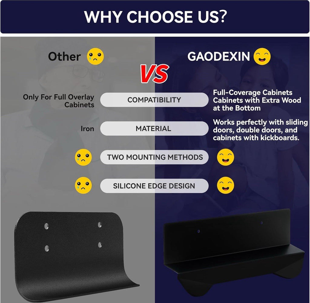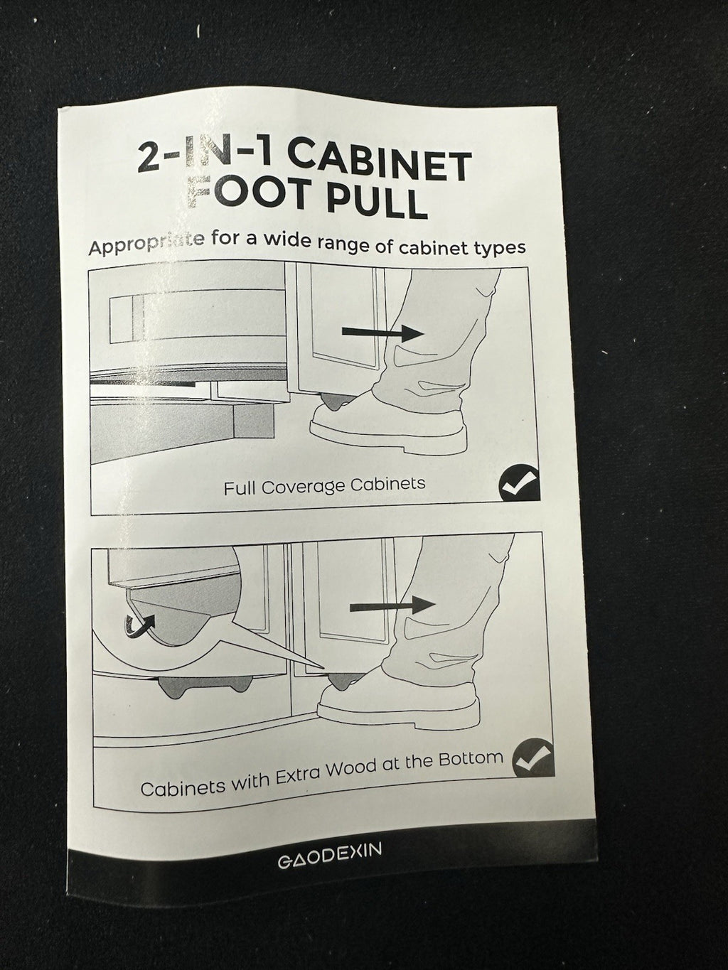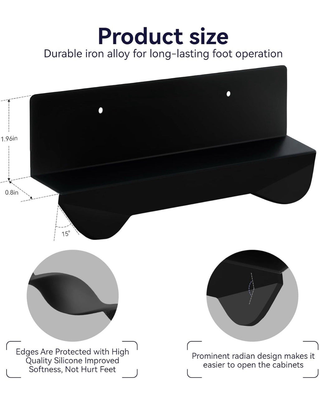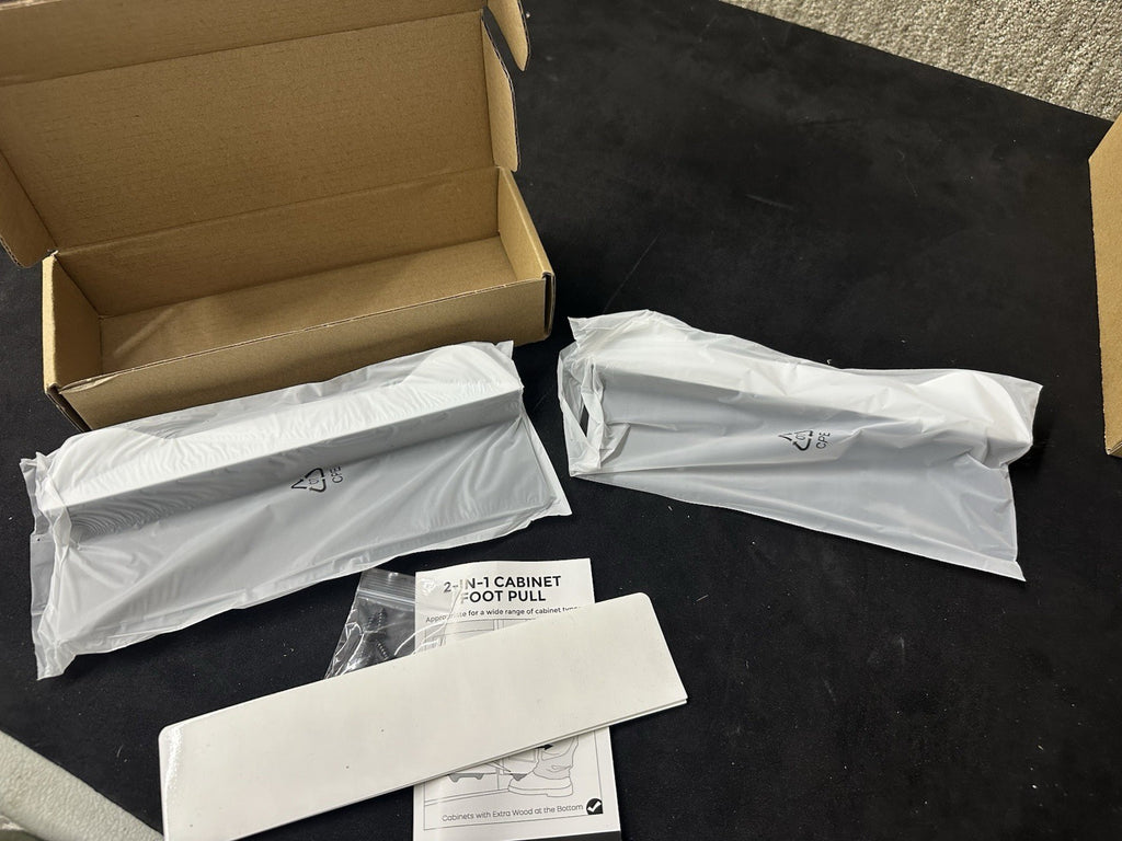 The Gaodexin 2-in-1 Cabinet Foot Pulls 2-Pack is a set of sleek black steel drawer pulls with a matte finish. Designed by Gaodexin, these cabinet pulls are perfect for adding a modern touch to your kitchen or bathroom cabinets. The set includes two pulls, making it easy to update multiple drawers with a consistent style. Made of durable steel, these handy cabinet accessories provide a convenient and stylish way to open and close your drawers seamlessly.
