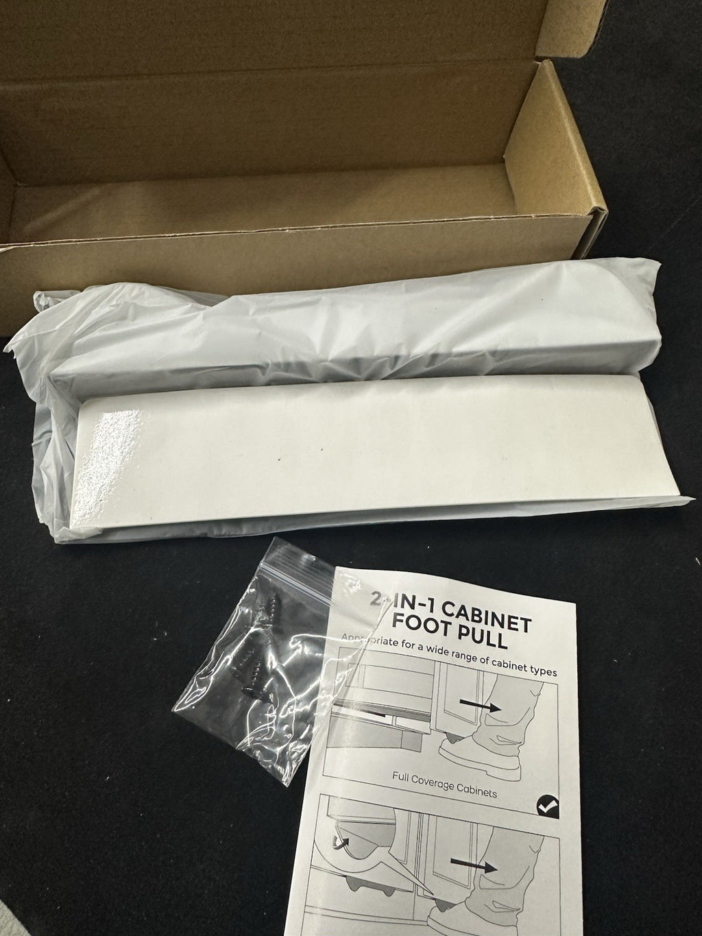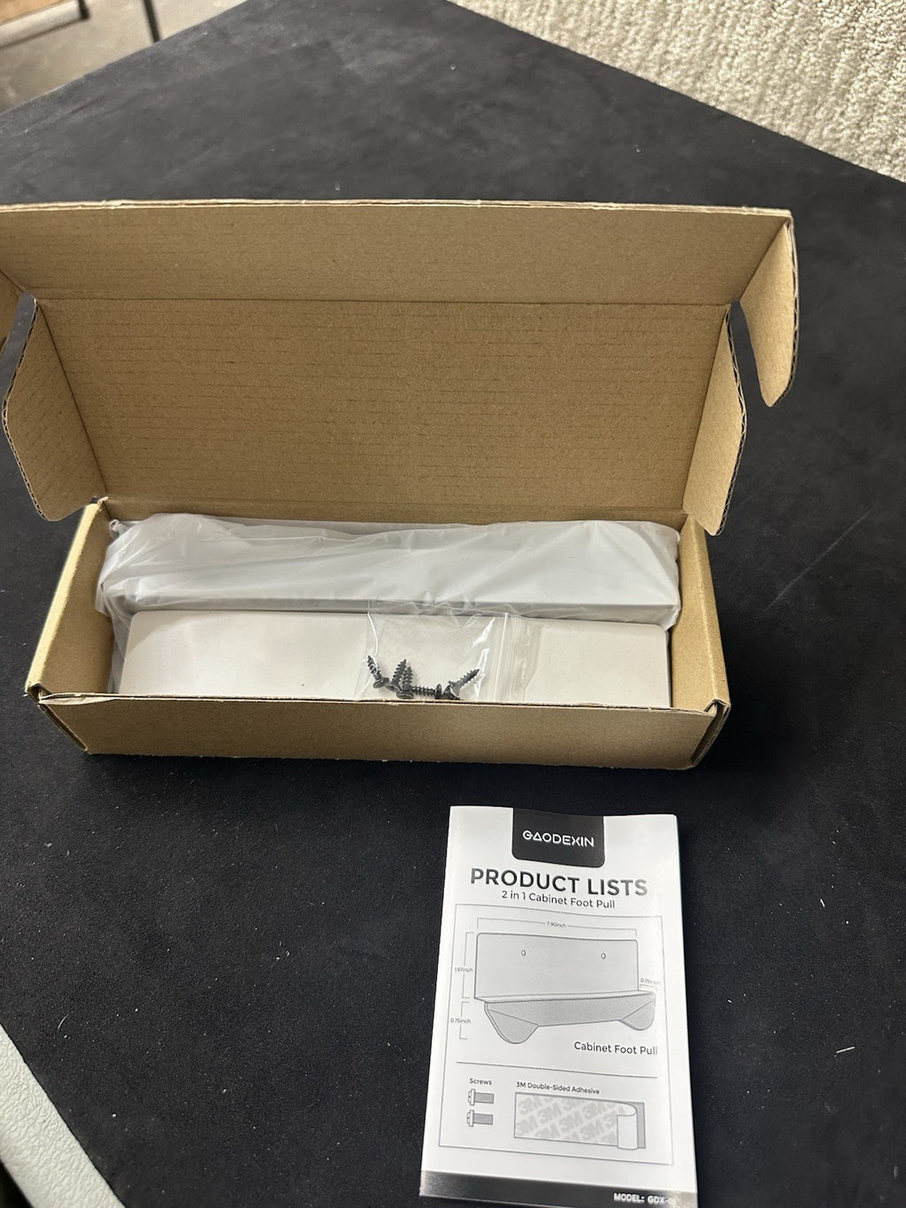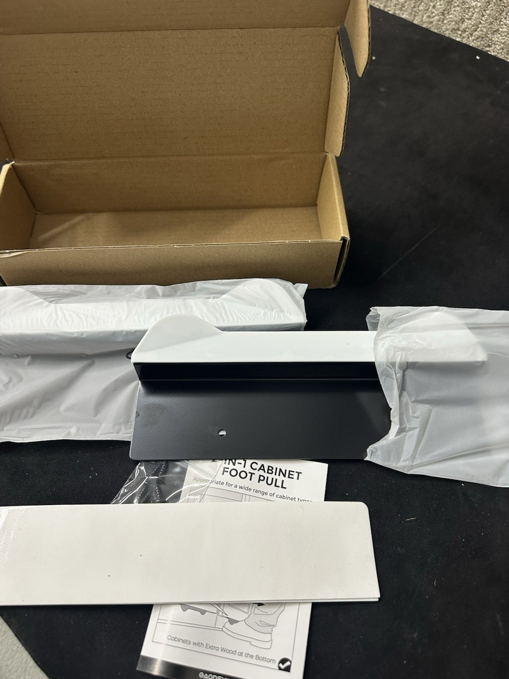 The Gaodexin 2-in-1 Cabinet Foot Pulls 2-Pack is a set of sleek black steel drawer pulls with a matte finish. Designed by Gaodexin, these cabinet pulls are perfect for adding a modern touch to your kitchen or bathroom cabinets. The set includes two pulls, making it easy to update multiple drawers with a consistent style. Made of durable steel, these handy cabinet accessories provide a convenient and stylish way to open and close your drawers seamlessly.