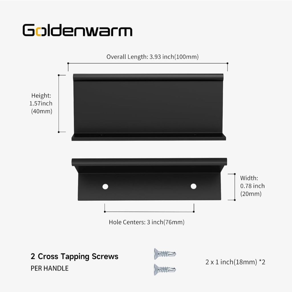 The Goldenwarm 10 Pack Black Finger Edge Pulls Drawer is a modern and sleek cabinet hardware set designed for easy and stylish drawer pulls. With a center-to-center measurement of 3 inches, these aluminum pulls are durable and built to last. The black color adds a touch of elegance to any kitchen or bathroom cabinet, making it a versatile and practical choice for home improvement projects. Made in China, these drawer pulls offer a contemporary design that is both functional and aesthetically pleasing.