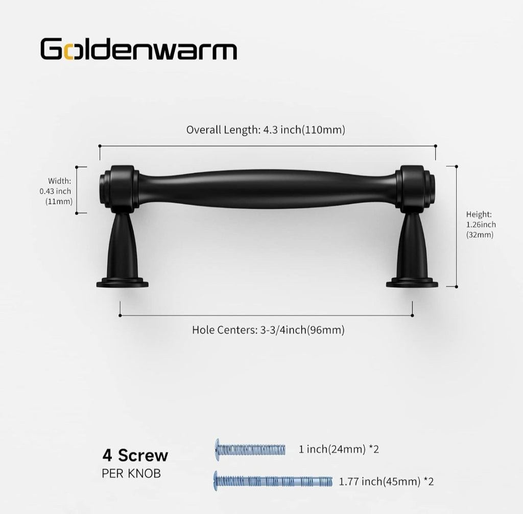 The goldenwarm 30 Pack 3 3/4 inch Gold Cabinet Pulls are stylish and modern drawer handles made of brass with a brushed finish. These universal/reversible handles have a center-to-center measurement of 3 inches and come with fixings supplied. With a sleek design and a beautiful gold color, these pulls are perfect for adding a touch of elegance to your cabinets and drawers. Made in China, these cabinet pulls are durable and easy to install, making them a convenient and attractive addition to any home.