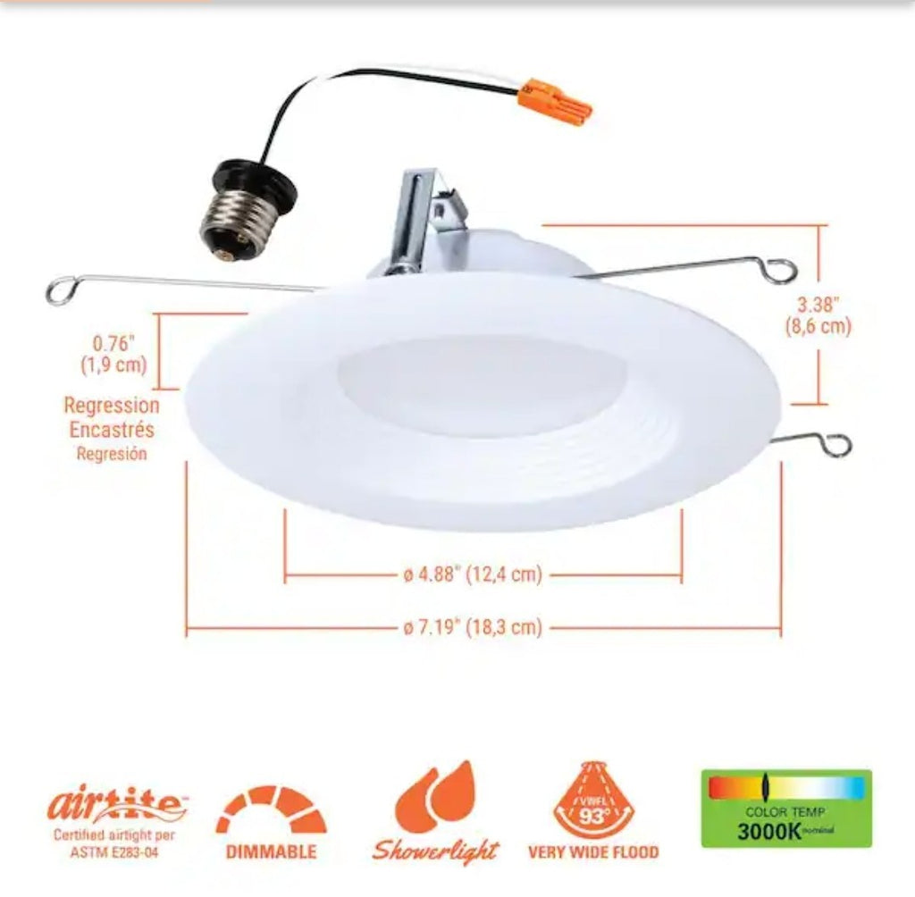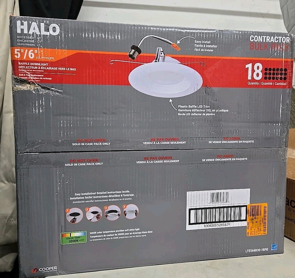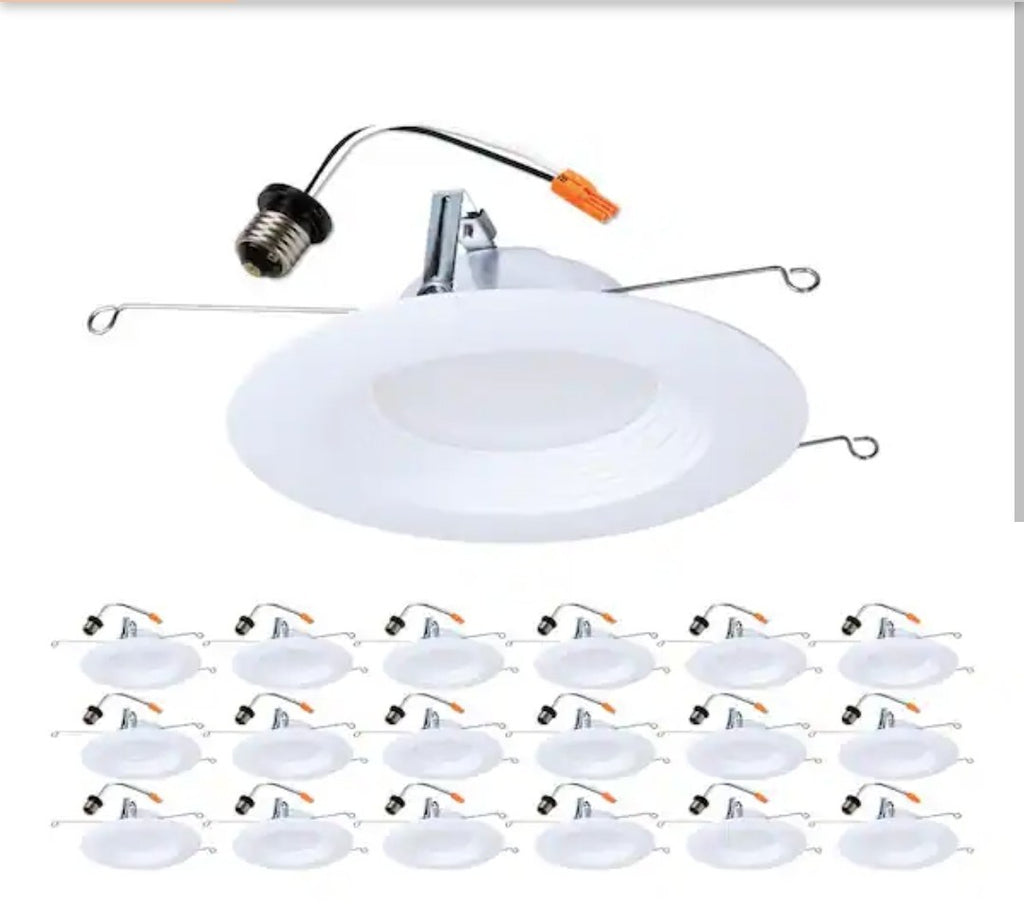 The HALO LTE 5/6 in. Integrated LED Recessed Trim Housing (12-Pack) is a white aluminum trim housing that is designed for residential indoor use. It features a 600 lumens output with a soft white color temperature and a color rendering index of 90. This trim housing is wet rated and IC rated, making it suitable for both new construction and remodel projects. The integrated LED technology provides energy-efficient lighting, and it is dimmable for customizable brightness levels. With a pack size of 12, this trim housing is designed to provide soft white light in a sleek and modern design.