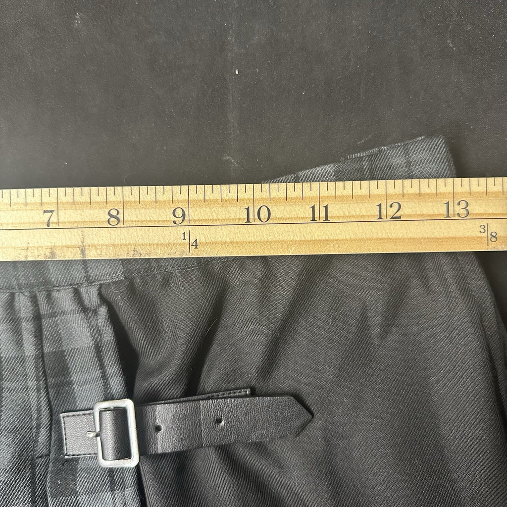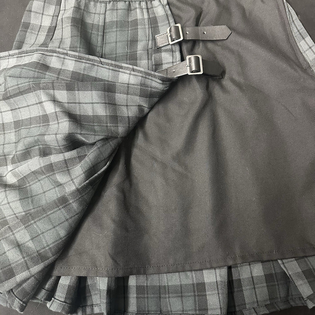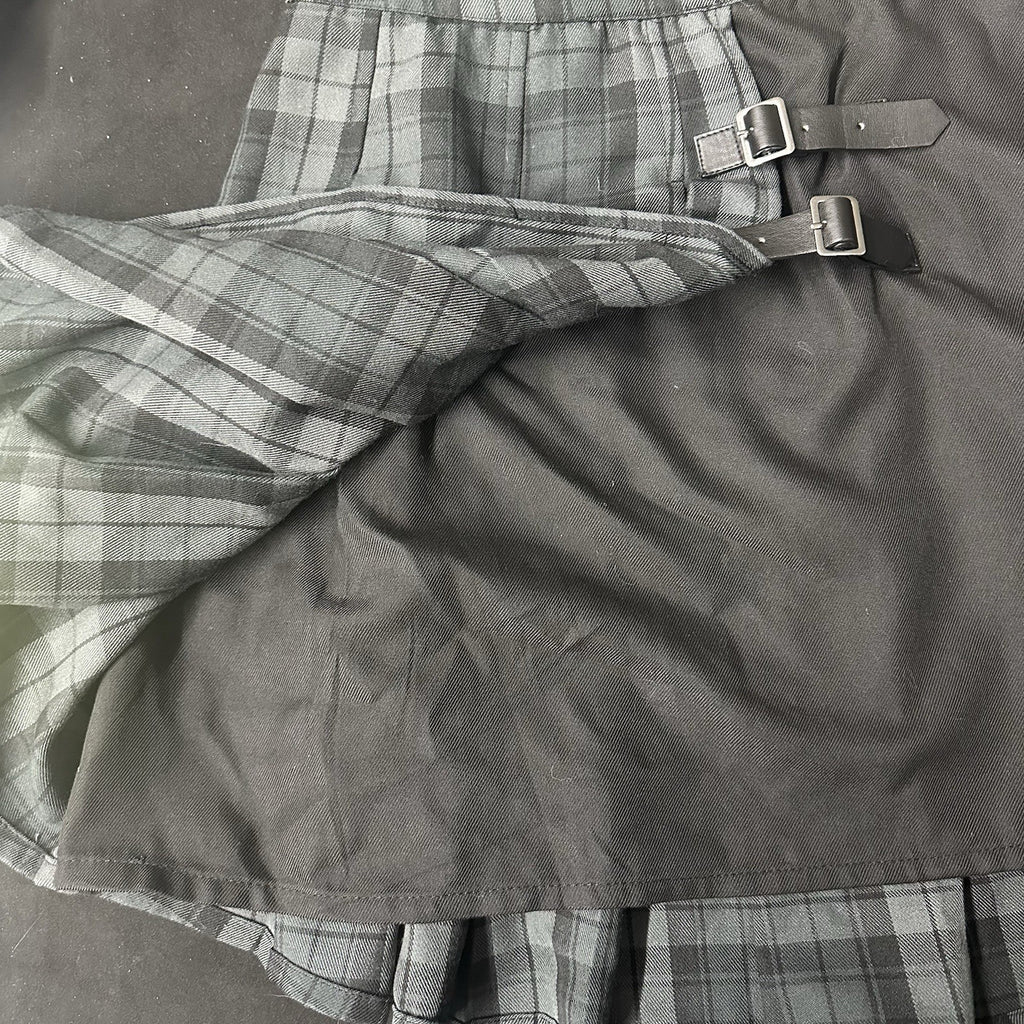 This Hot Topic plaid goth punk rock metal mini skirt is the perfect blend of 90s Y2K style for women in size small. Made from a comfortable polyester/rayon blend, this skirt features a zip closure and lightweight design, making it ideal for casual or travel occasions. The multicolor plaid pattern, along with pleated accents and metal buckles, adds a touch of edgy rock and punk flair to the garment. Machine washable and suitable for all seasons, this skirt in a short length is a must-have for those embracing a colorful and metal-themed aesthetic.