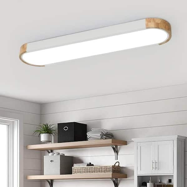 The HUOKU Lumin 38 in. W 1-Light Black+Wood Integrated LED Flush Mount Ceiling Light is a stylish and modern fixture perfect for both residential and commercial spaces. With a sleek black and wood finish, this linear panel light features acrylic shade in white, emitting warm white light with 2940 lumens of brightness. The flush mount design and dimmable capability make it easy to customize the lighting for any room. The solid wood construction and indoor damp rating ensure durability and safety for years to come. Included installation instructions and integrated LED technology make this ceiling light a convenient and energy-efficient choice for your home or business.