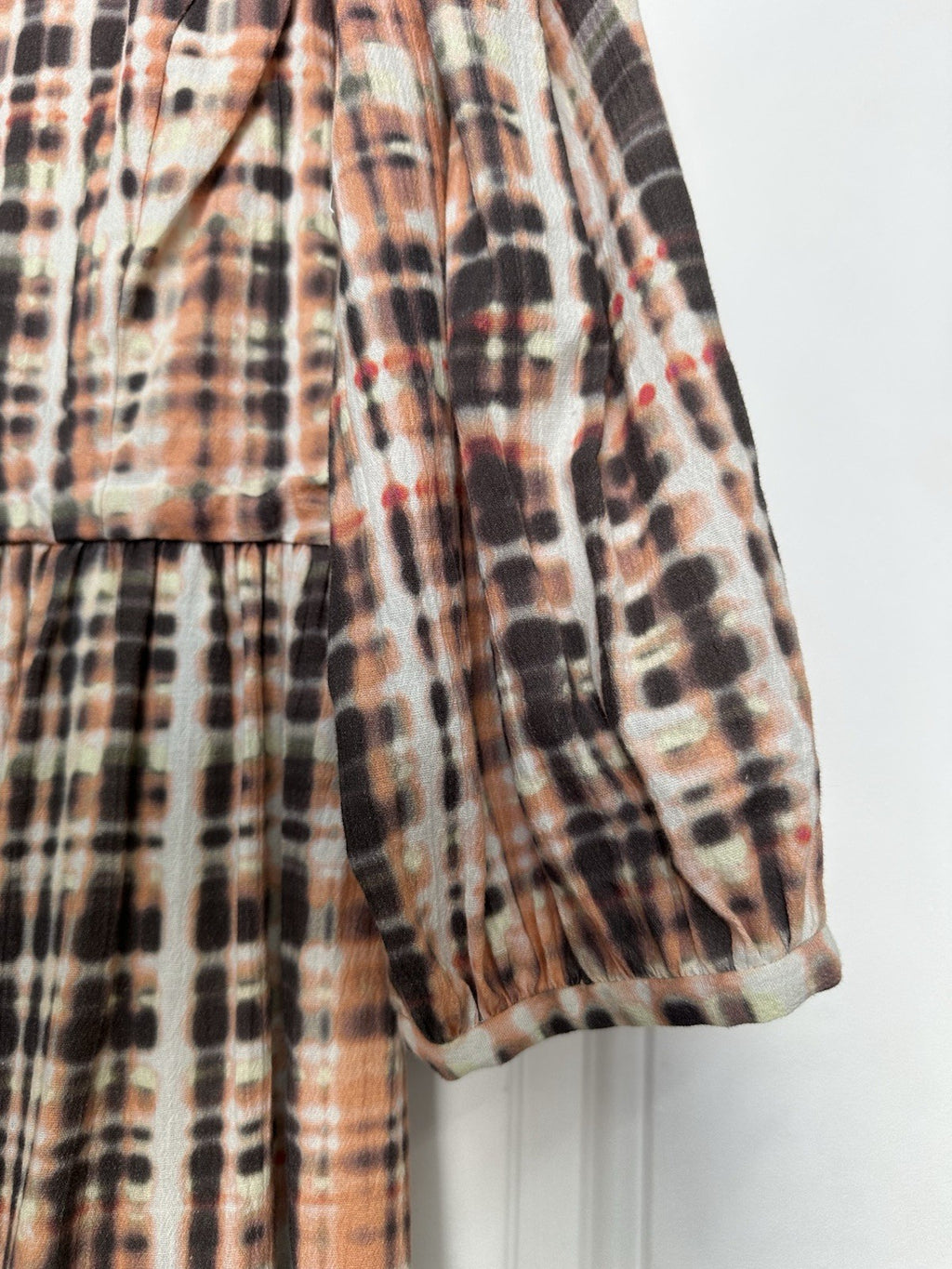 The Joie Dress in Tobey Espresso Multi is a stylish and versatile addition to any woman's wardrobe. This midi-maxi dress features a flattering v-neckline, 3/4 sleeves, and a plaid pattern for a chic and fashionable look. Made from 100% cotton, this A-line dress is perfect for both party and casual occasions, making it a must-have for all seasons. The hand wash only care instruction ensures that your dress stays looking fresh and fabulous for years to come.