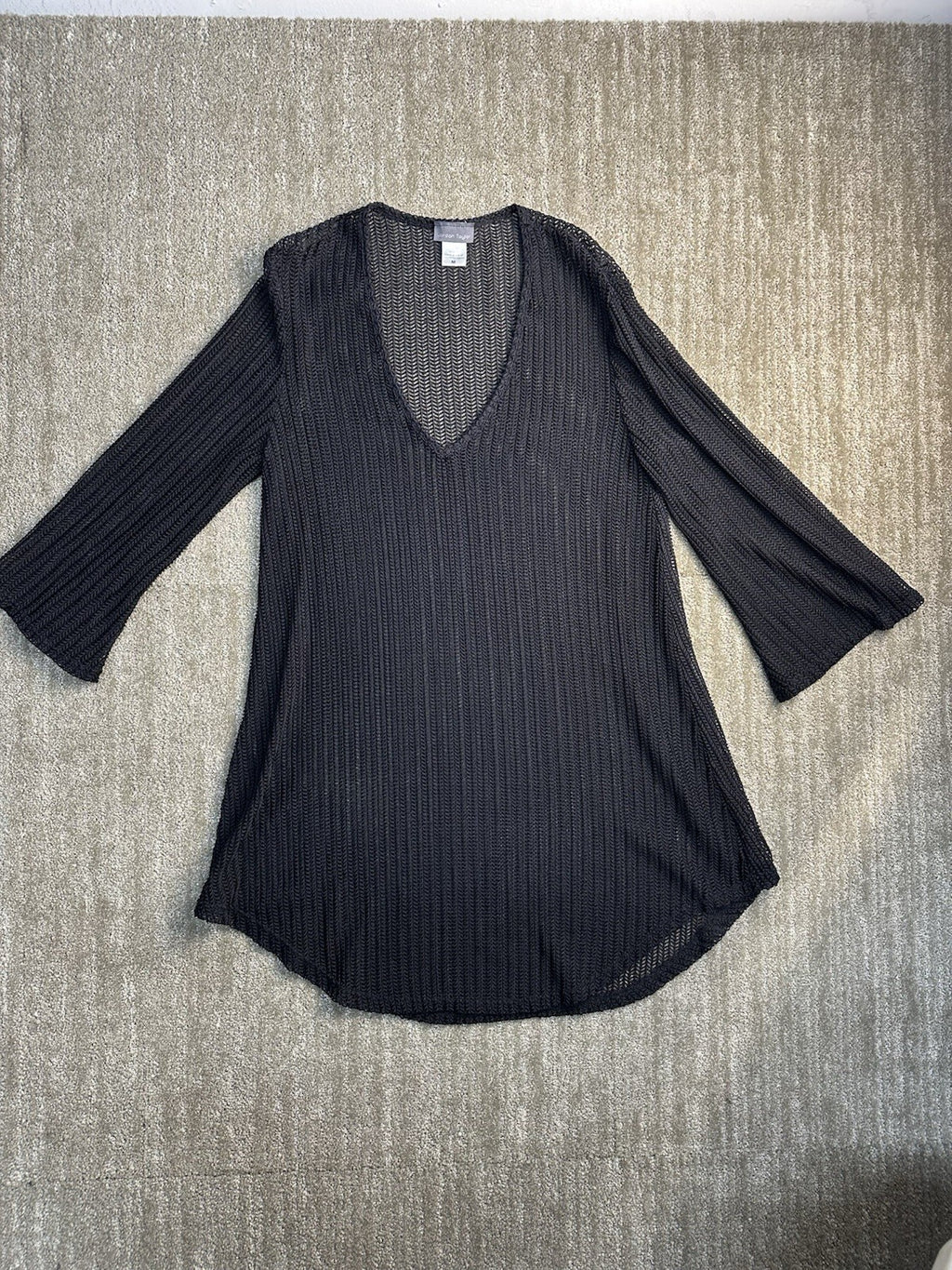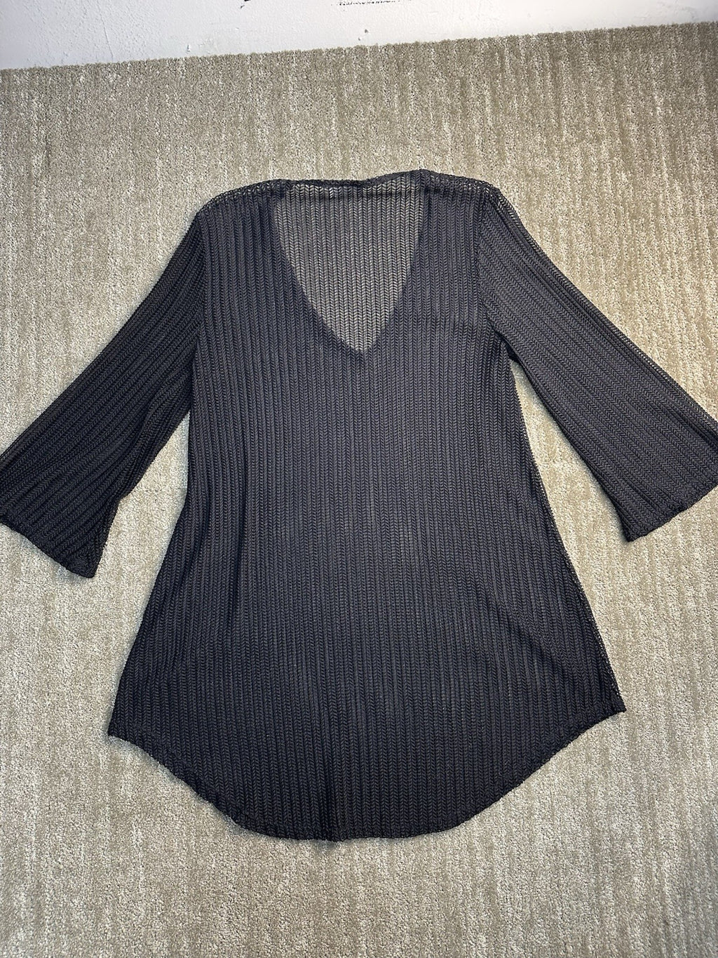 The Jordan Taylor Sheer Black Mesh Swimsuit Cover Up is a stylish and versatile piece perfect for beach days or poolside lounging. Made from a comfortable nylon spandex blend, this cover up features a flattering V-neck design and 3/4 sleeves. The sheer accents add a touch of sophistication, while the solid black color makes it easy to mix and match with different swimsuits. Designed by Jordan Taylor, this cover up is sure to become a staple in your summer wardrobe.
