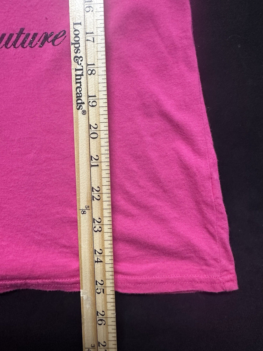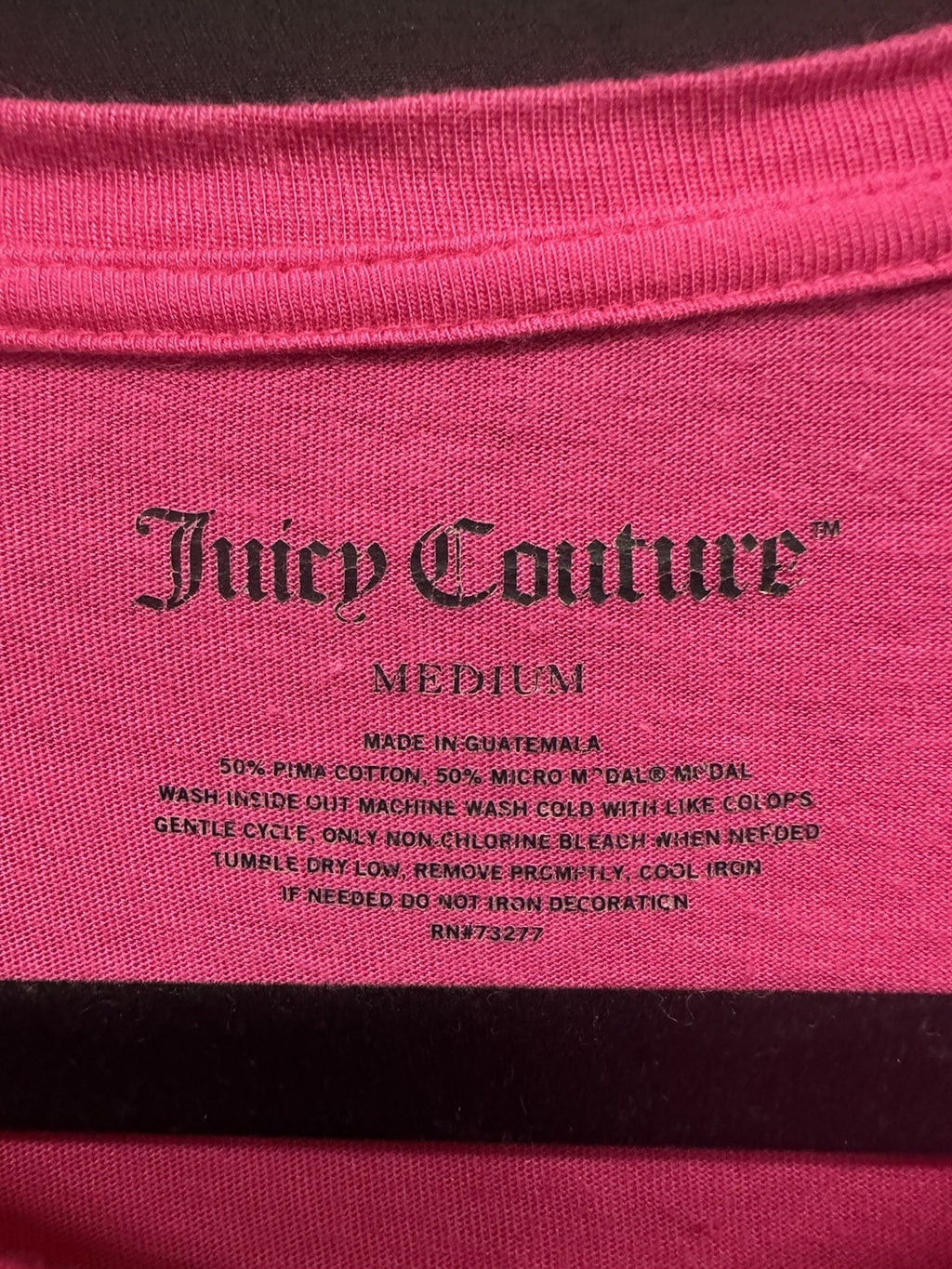The Juicy Couture Hot Pink Rhinestone Tee Shirt in Y2K style is a versatile and eye-catching addition to any woman's wardrobe. Made from a comfortable blend of cotton and modal, this short sleeve shirt features a round neckline and a pullover closure for easy wear. The garment care is machine washable, making it convenient for everyday use. The hot pink color with rhinestone accents adds a fun and trendy touch, perfect for casual occasions or travel during the summer, fall, or spring seasons. Rock your style with this basic tee that is sure to make a statement.