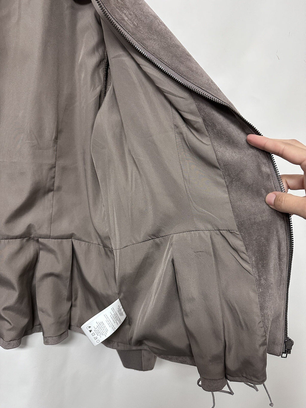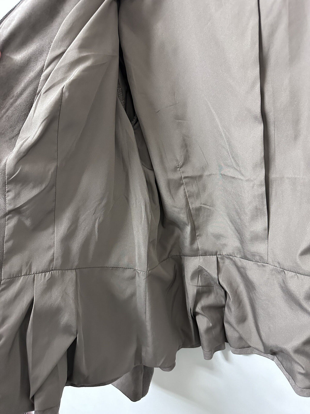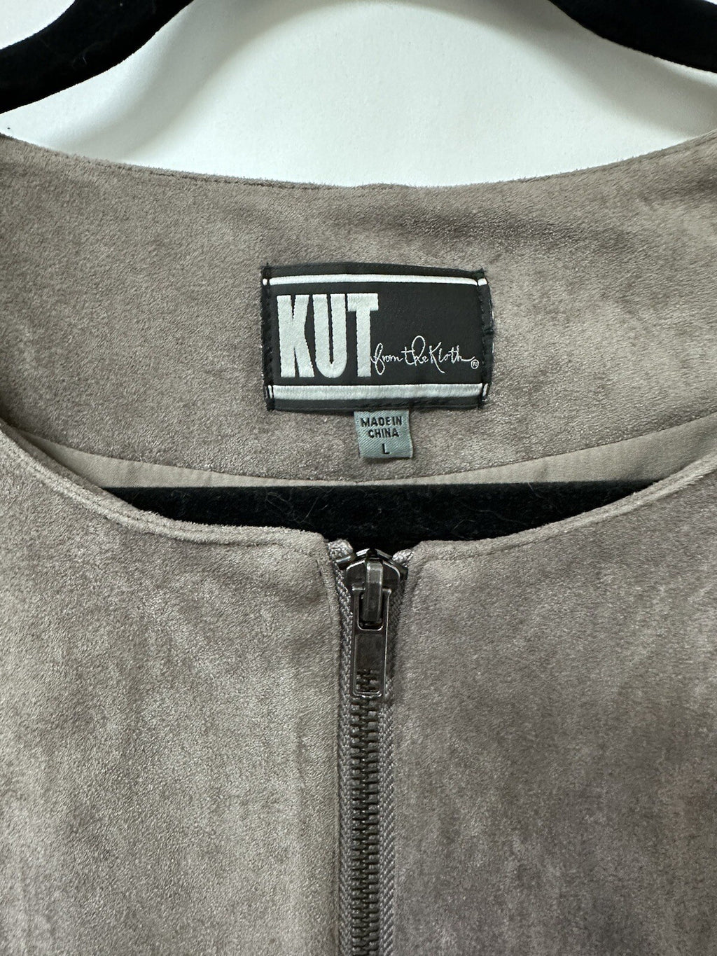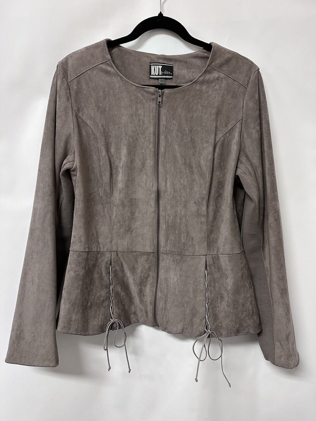 Elevate your wardrobe with this stylish Kut From The Kloth jacket. Crafted with faux suede and featuring a zip closure and long sleeves, this motorcycle-style jacket is perfect for any occasion. The light brown color and accented zipper provide a fashionable touch, while the brand's quality ensures that this jacket will be a staple in your wardrobe for years to come. Available in regular size, this jacket is a must-have for any fashion-forward woman looking to make a statement.