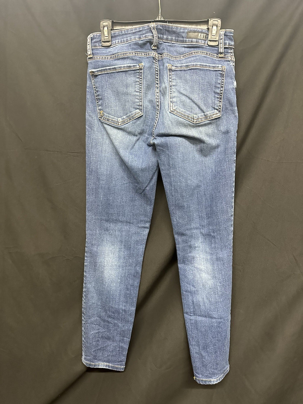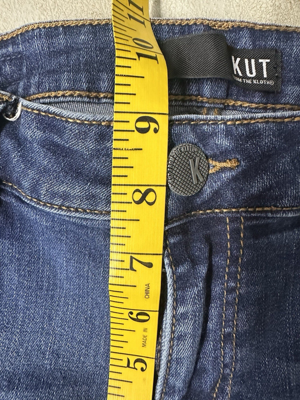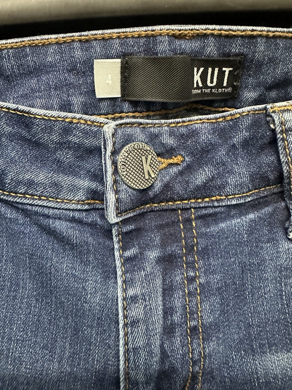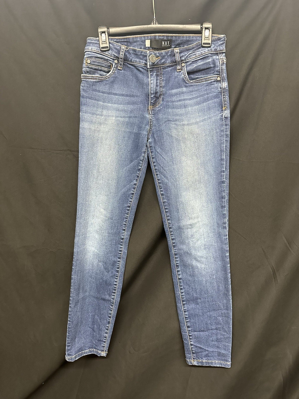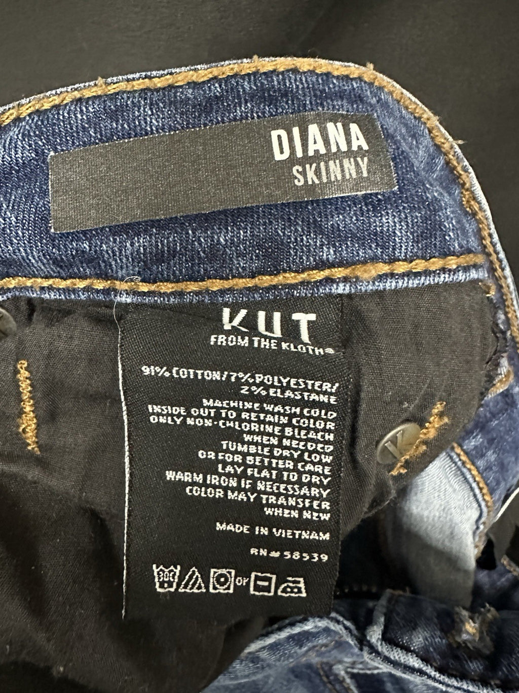 The Kit From The Kluth Women's Jeans Diana Skinny in US size 4 is a stylish and flattering pair of jeans for women. Made by the brand KUT from the Kloth, these regular fit jeans feature a zip and button closure, a mid-rise waist, and a skinny style. With a waist size of 28 inches and an inseam of 27 inches, these blue jeans are perfect for everyday wear. Upgrade your wardrobe with these versatile and comfortable jeans that are sure to become a staple in your closet.