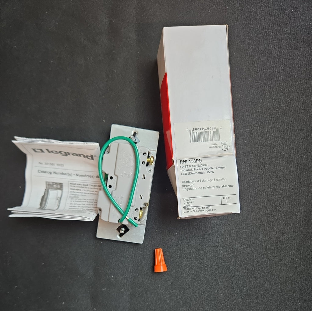 The Legrand radiant 150W Rocker Dimmer is a high-quality electrical switch designed specifically for LED, CFL, and halogen bulbs. With a 3-way/1-pole operation method, this dimmer allows you to easily adjust the lighting levels to your preference. The Legrand brand ensures reliability and compatibility with a wide range of bulb types, making it a convenient and essential addition to any home improvement project involving electrical outlets, switches, and accessories.