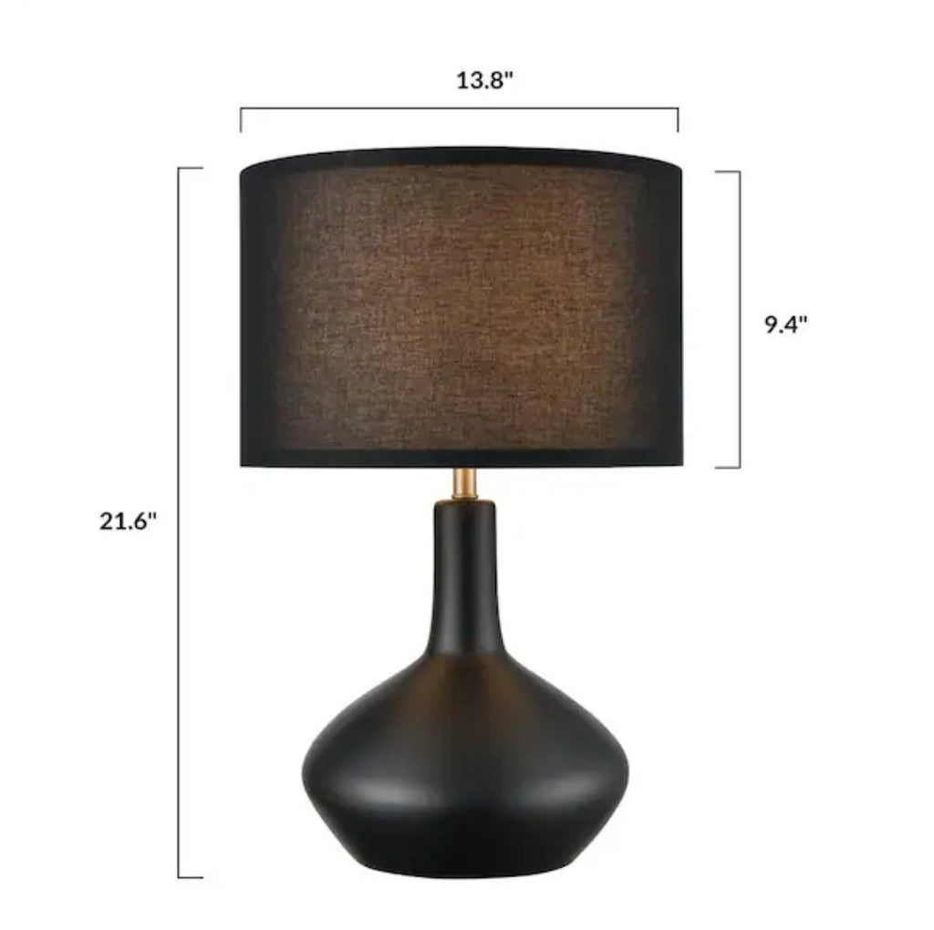 The Light Society Kurvena 21.6 in. Black Table Lamp with Fabric Shade is a stylish and modern bedside lamp perfect for a bedroom setting. With a sleek black ceramic base and a black fabric shade, this lamp adds a touch of sophistication to any room. It features a 60-watt E26 incandescent or LED light bulb with a clip-on shade fitter, making it easy to use and clean. The lamp is plug-in powered with a 72-inch cord length, suitable for various lighting preferences with a damp/wet rating of dry rated. The California Title 20 Compliant model, LS-T434-BK, is designed for a gourd-shaped lamp with a drum shade, offering a convenient and elegant lighting solution for your home.