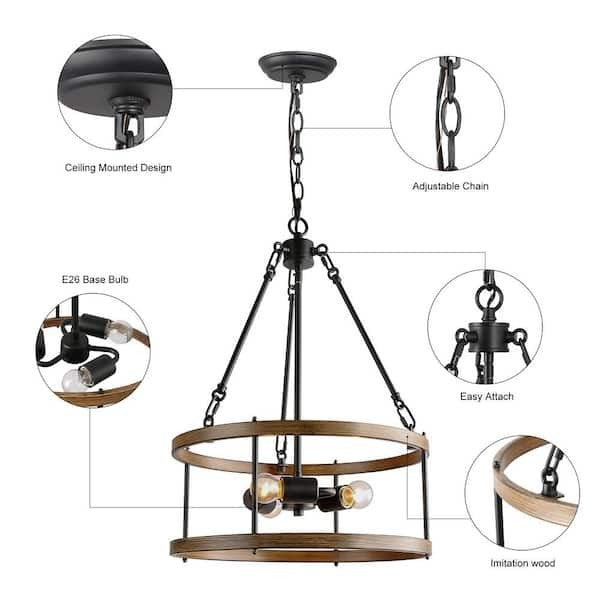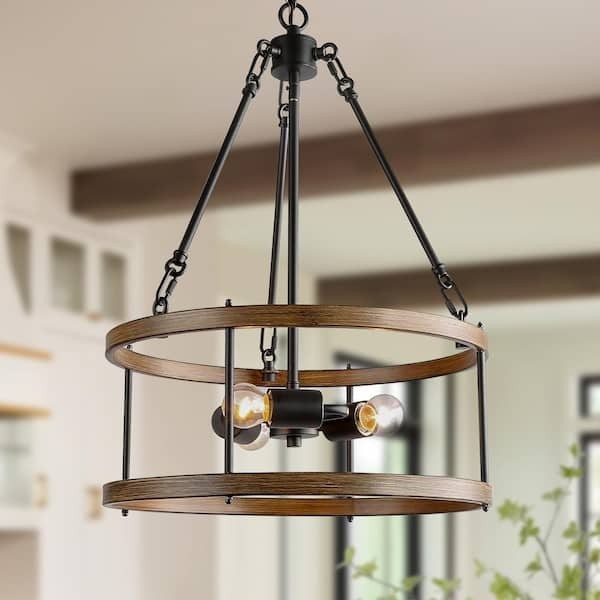 The LNC Brown Drum Chandelier is a stylish and functional ceiling light fixture designed to add a touch of farmhouse charm to any room. With its black pendant and 3-light cage design, this chandelier brings a rustic and cozy feel to your space. The LNC brand ensures quality and durability, making it a reliable choice for your home or garden lighting needs. Perfect for adding a warm and inviting ambiance to your living room, dining area, or outdoor space.
