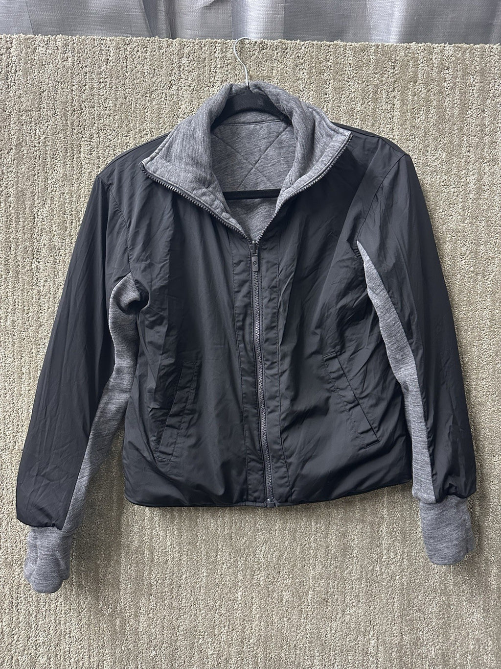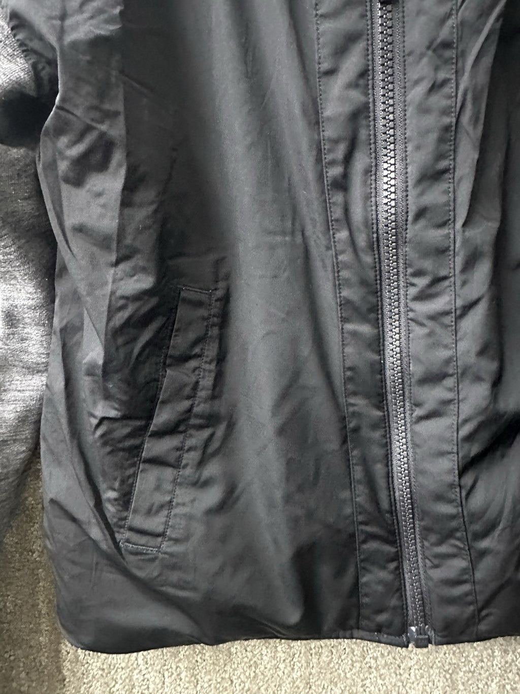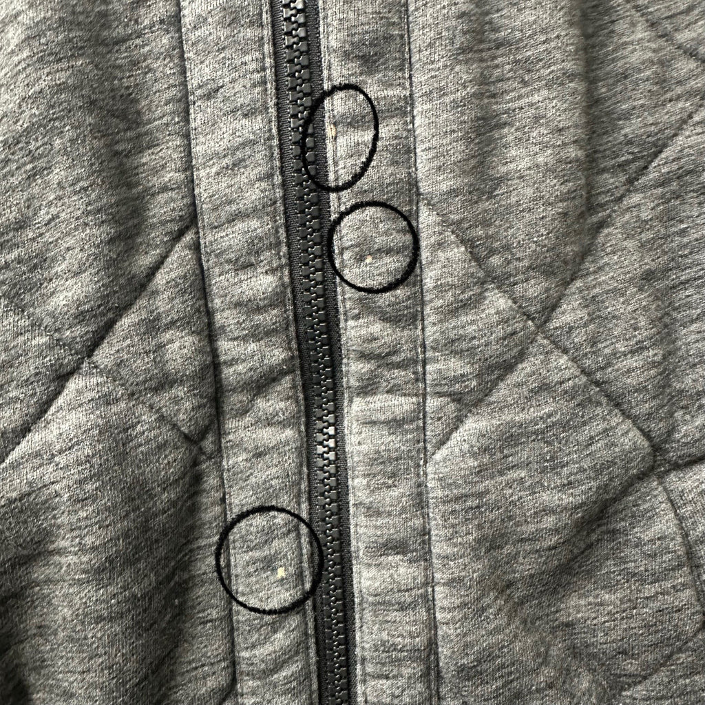 ***Small tiny spots as circled on the gray side in the pictures. Very tiny, jacket overall is great.***