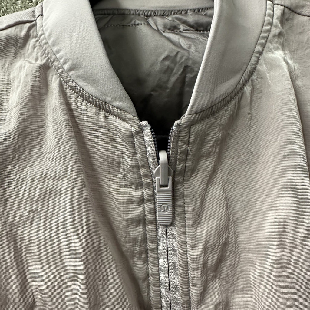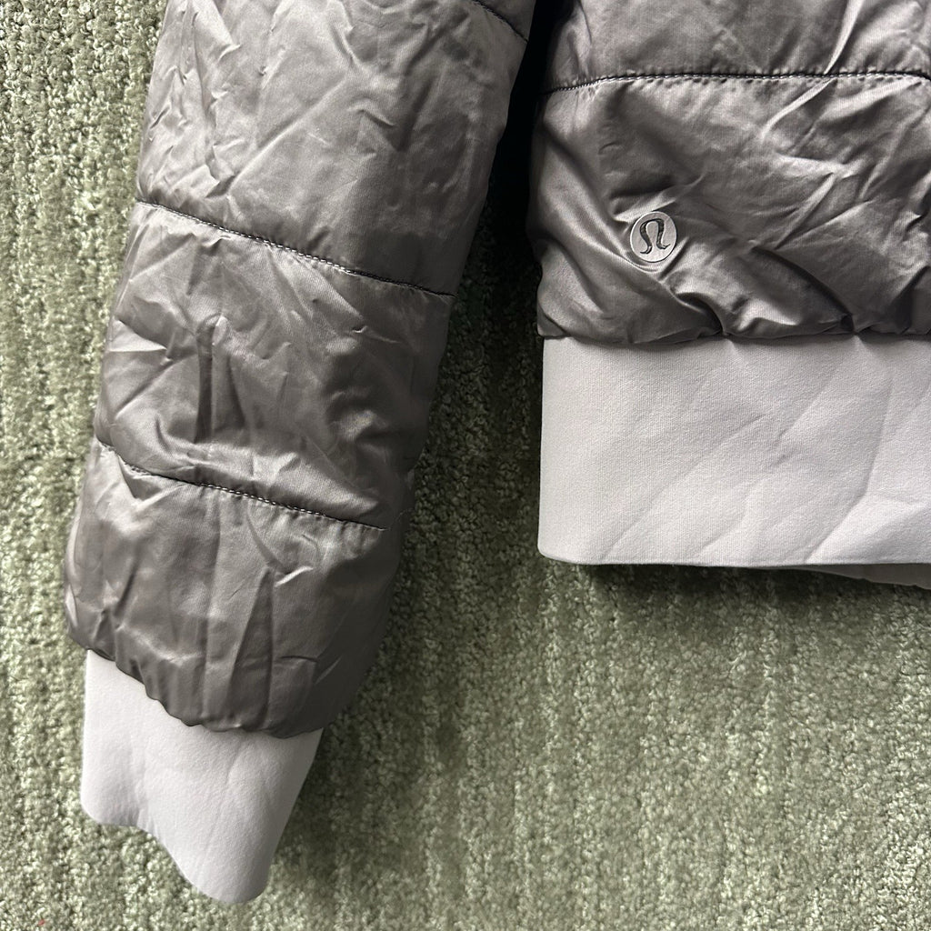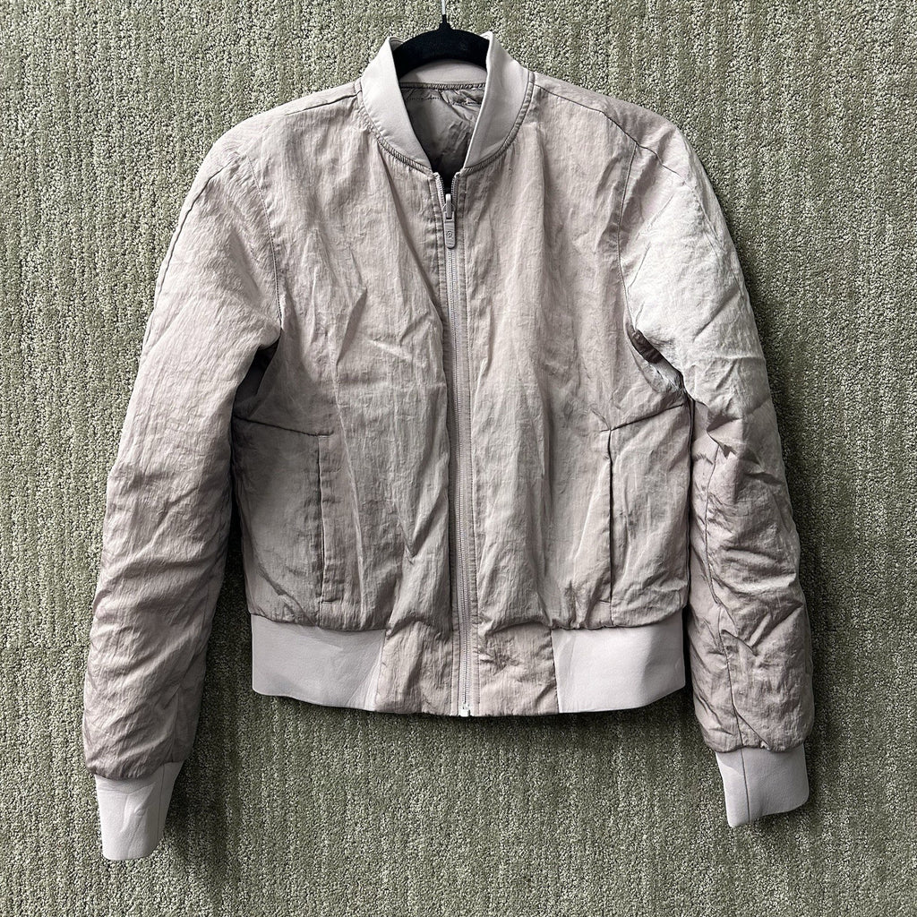 The Lululemon Non Stop Reversible Bomber Jacket in Purple, Size 4, is a stylish and versatile outerwear option for women. Made from polyester satin, this jacket features a reversible design, allowing for multiple styling options. The bomber style adds a trendy touch to the jacket, making it a fashionable choice for any wardrobe. With its high-quality fabric and unique design, this Lululemon jacket is perfect for those looking for a statement piece to add to their closet.