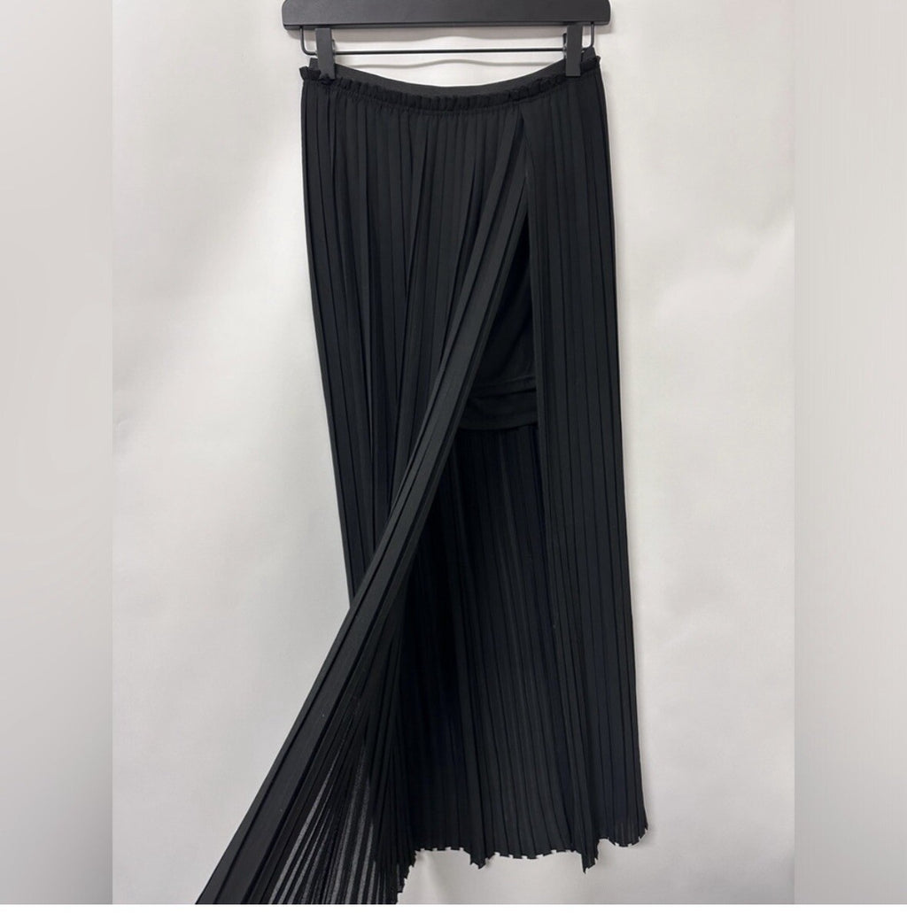 Lush Black Pleated Sheer Slit Skirt Size Small (9.2)
