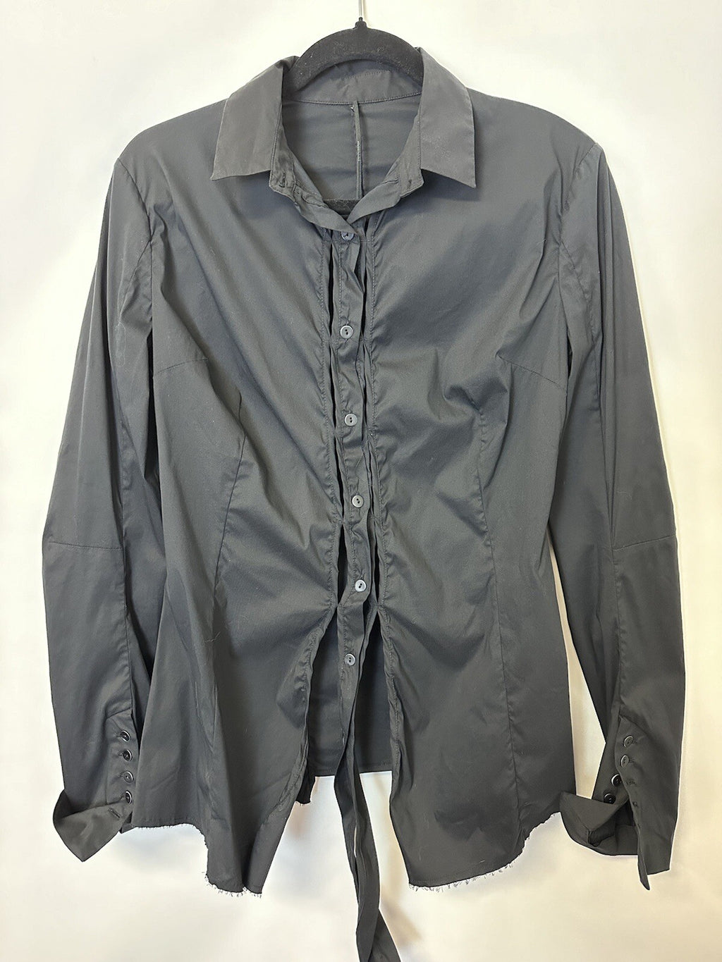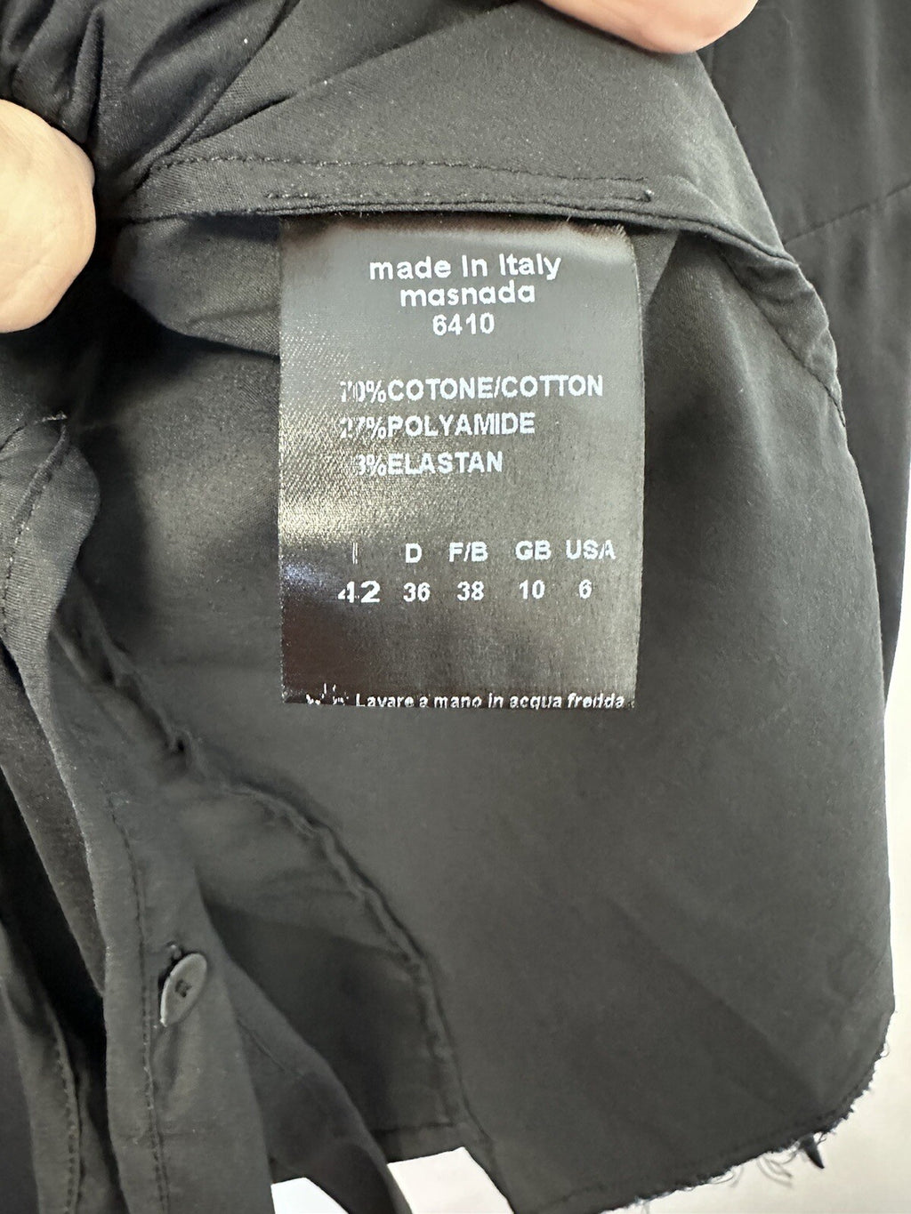 Elevate your wardrobe with this elegant Masnada women's button-up top. With a classic and fitted long sleeve design, this top is made with a blend of polyamide, cotton, and elastan materials, making it comfortable for any season. The black solid pattern and button accents add a touch of sophistication to any outfit.