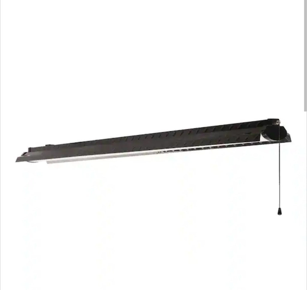 The Metalux SHP 46.5 in. Black Integrated LED Shop Light is a modern and sleek lighting fixture designed for indoor spaces like garages. With a power consumption of 40W and a bright white light color, it provides 2000 lm or more of lumens for a well-lit environment. The shop light features a pull chain for easy on and off control, a rectangular shade shape, and a sturdy metal construction. Its compact size, with a diameter of 5 inches and an item height of 46.5 inches, makes it perfect for adding a stylish and practical lighting solution to any home or garden space.