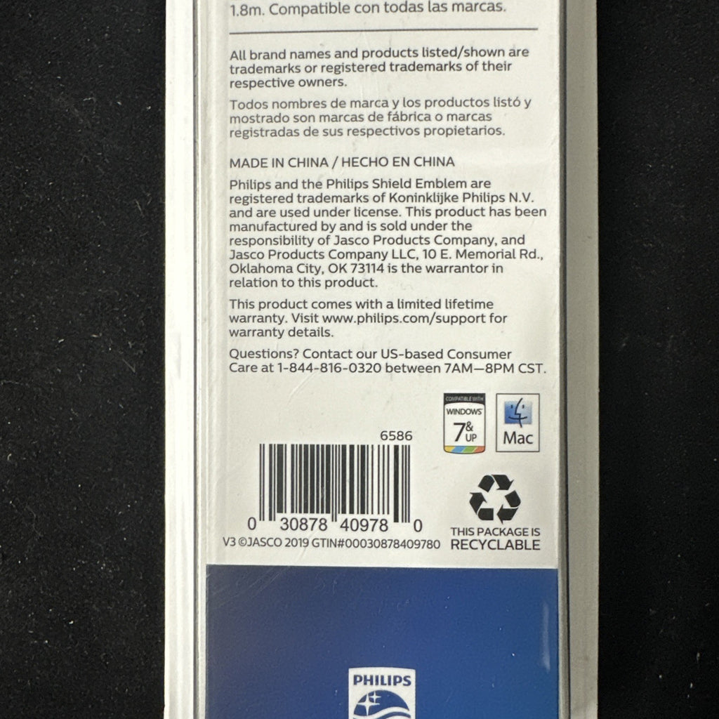 The Philips USB Extension Cable is a white cable that allows for a 6-foot extension of your USB connection. This cable, perfect for use with audio and video devices, features a USB connector on one end for easy plugging in. With the trusted Philips brand name, you can ensure quality and reliability in your tech setup.