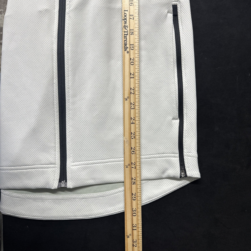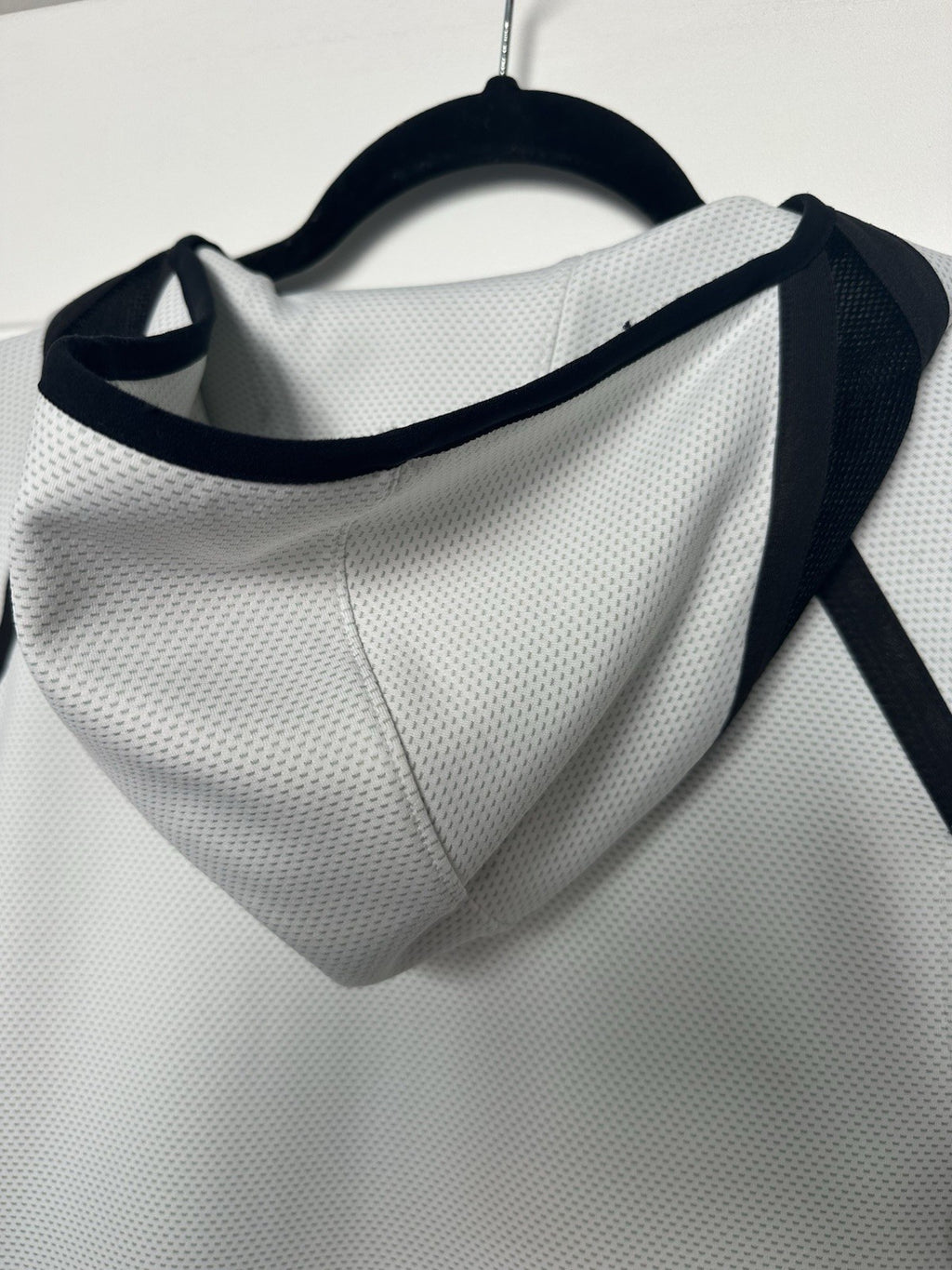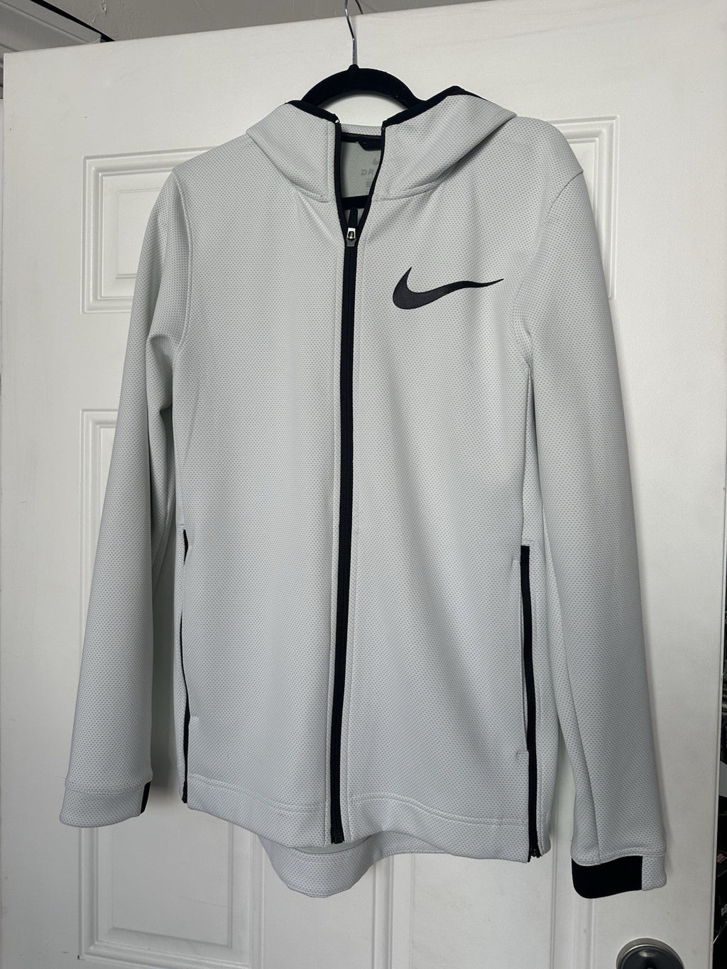 This Nike Men’s Hoodie Sweatshirt in size small features a solid light gray and white color with small zippers and a full zip design. Made with Dri-Fit technology, this hoodie sweatshirt is lightweight and perfect for all seasons, including winter, summer, fall, and spring. It has a regular fit, long sleeves27, and comes with a hood and pockets for added convenience. Ideal for various sports activities like gym training, tennis, golf, baseball, basketball, hiking, and running, this Nike hoodie is machine washable for easy care.