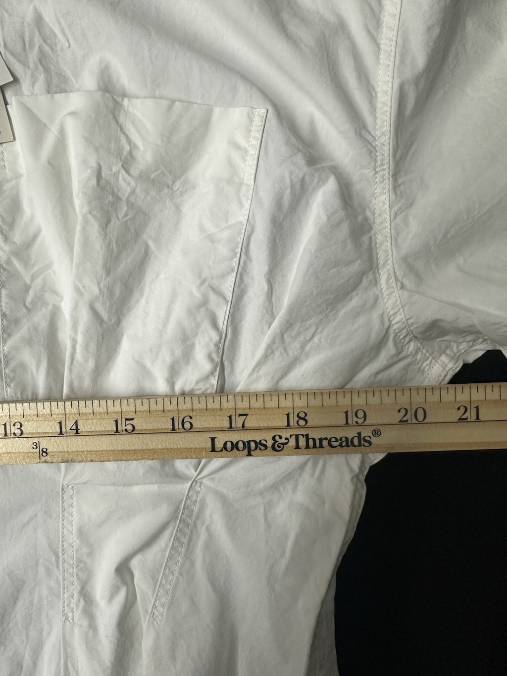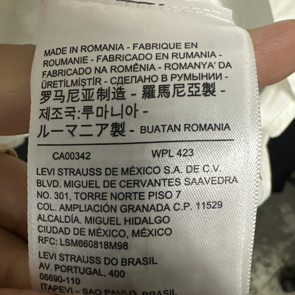 The NWT Women's LEVI'S MADE & CRAFTED Dad Shirtdress Minidress in size M is a stylish and versatile garment made from 100% cotton. This dress features a collared neckline, long sleeves, and a button-up closure, making it perfect for occasions like travel, parties, or casual outings. The short dress length and white color give it a fresh and trendy look, while the Levi's brand adds a touch of authenticity and quality. Machine washable and designed with a "Dad" theme, this dress is a must-have for the summer, fall, and spring seasons.