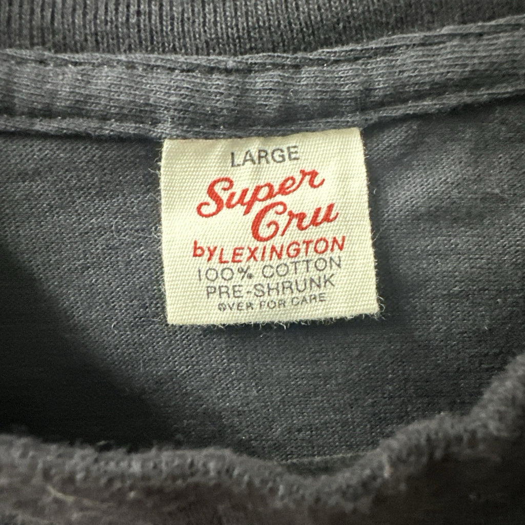 The PORTLAND TRAIL BLAZERS 1991 NBA Playoffs Tee Shirt in size Large is an officially licensed product featuring the Super Cru By Lexington brand. Made in the United States, this black shirt showcases the Portland Trail Blazers team logo, making it a perfect choice for basketball fans looking to commemorate the team's participation in the NBA Playoffs. Perfect for showing support for the team and celebrating their successful playoff run in 1991.