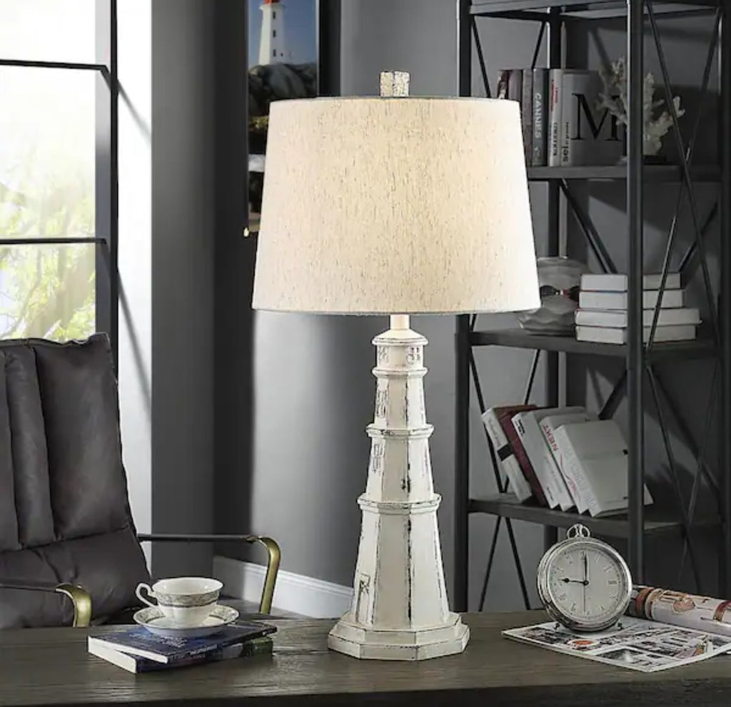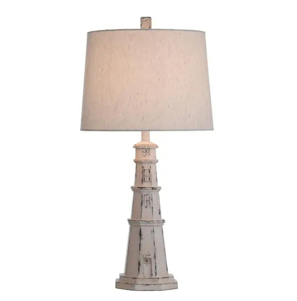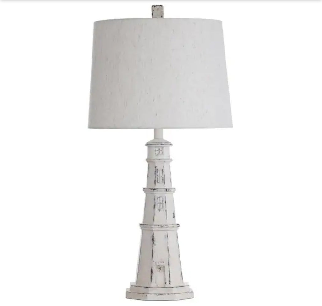 The StyleCraft Berwyn 33 in. Distressed White Lighthouse Table Lamp is a unique and stylish addition to any home decor. This 3D lamp features a drum-shaped shade and a plug-in power source, making it easy to use and illuminate any room. Although it does not come with a manufacturer warranty, it is designed to last and add a touch of charm to your living space.