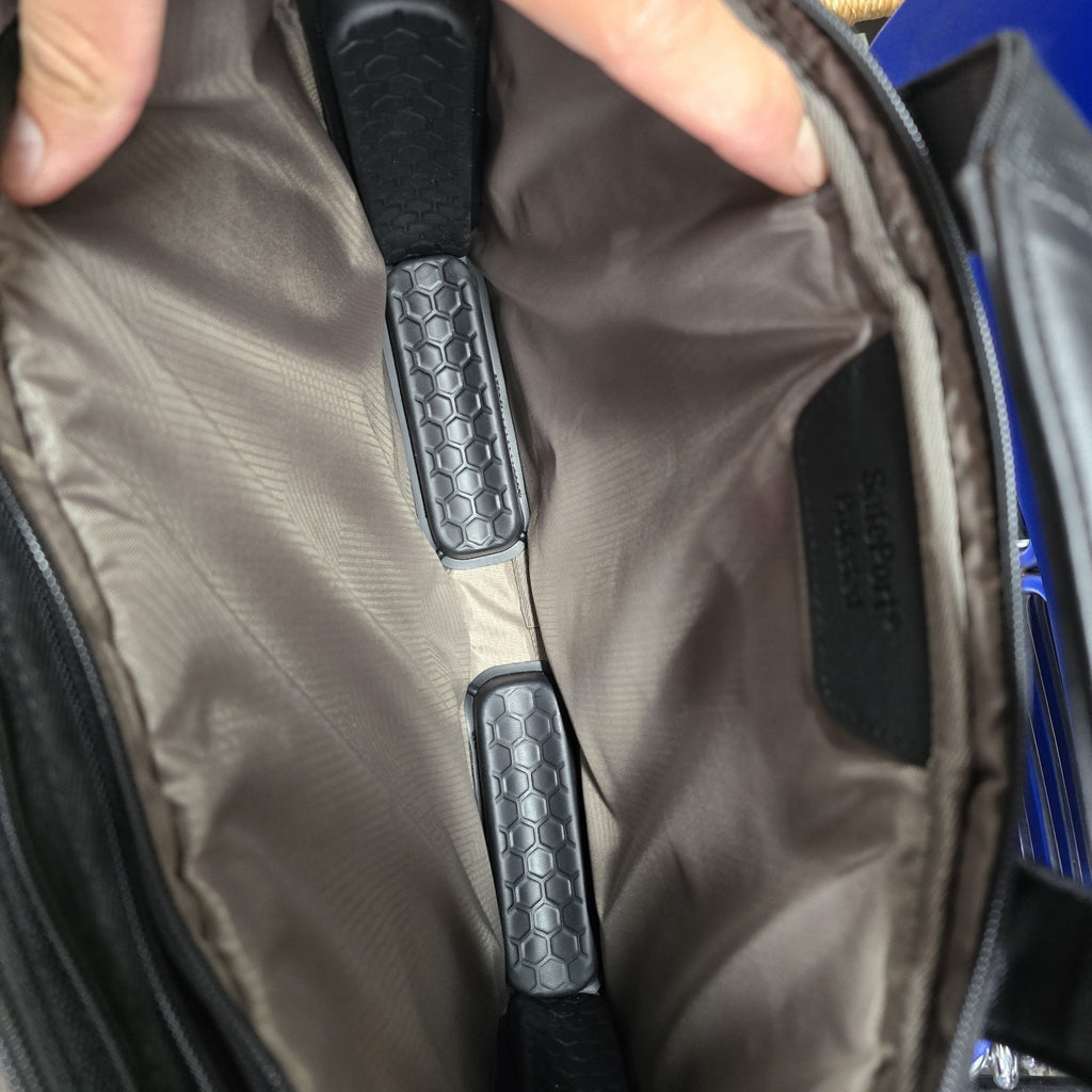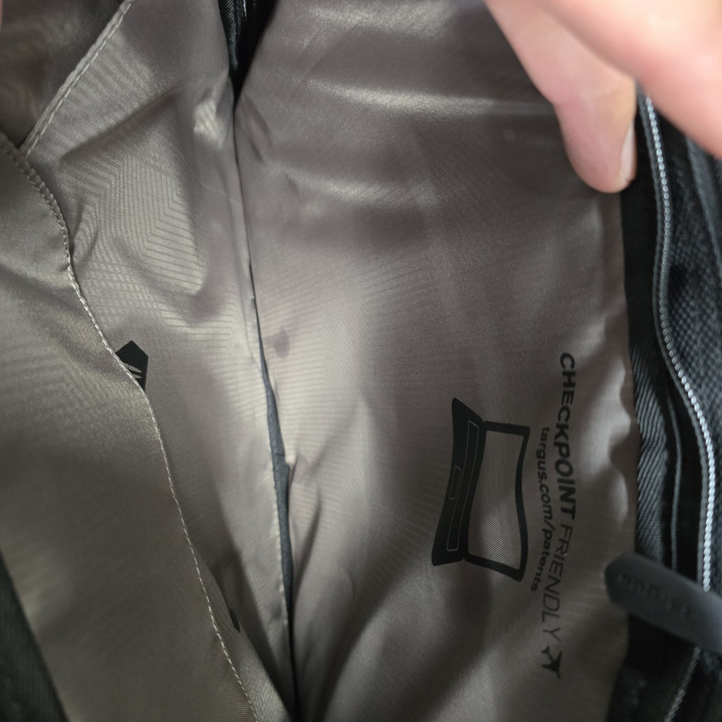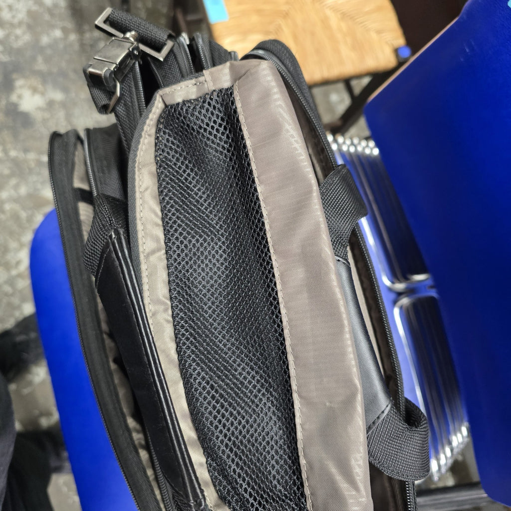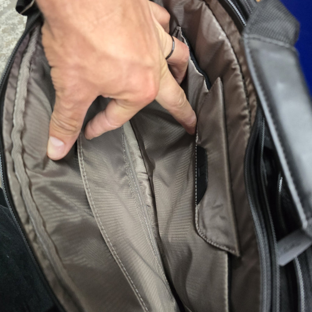 In near mint condition, but in the second largest pockets, there are several small discoloration marks.