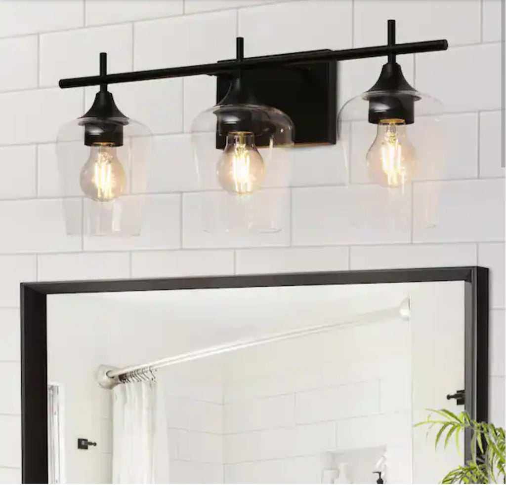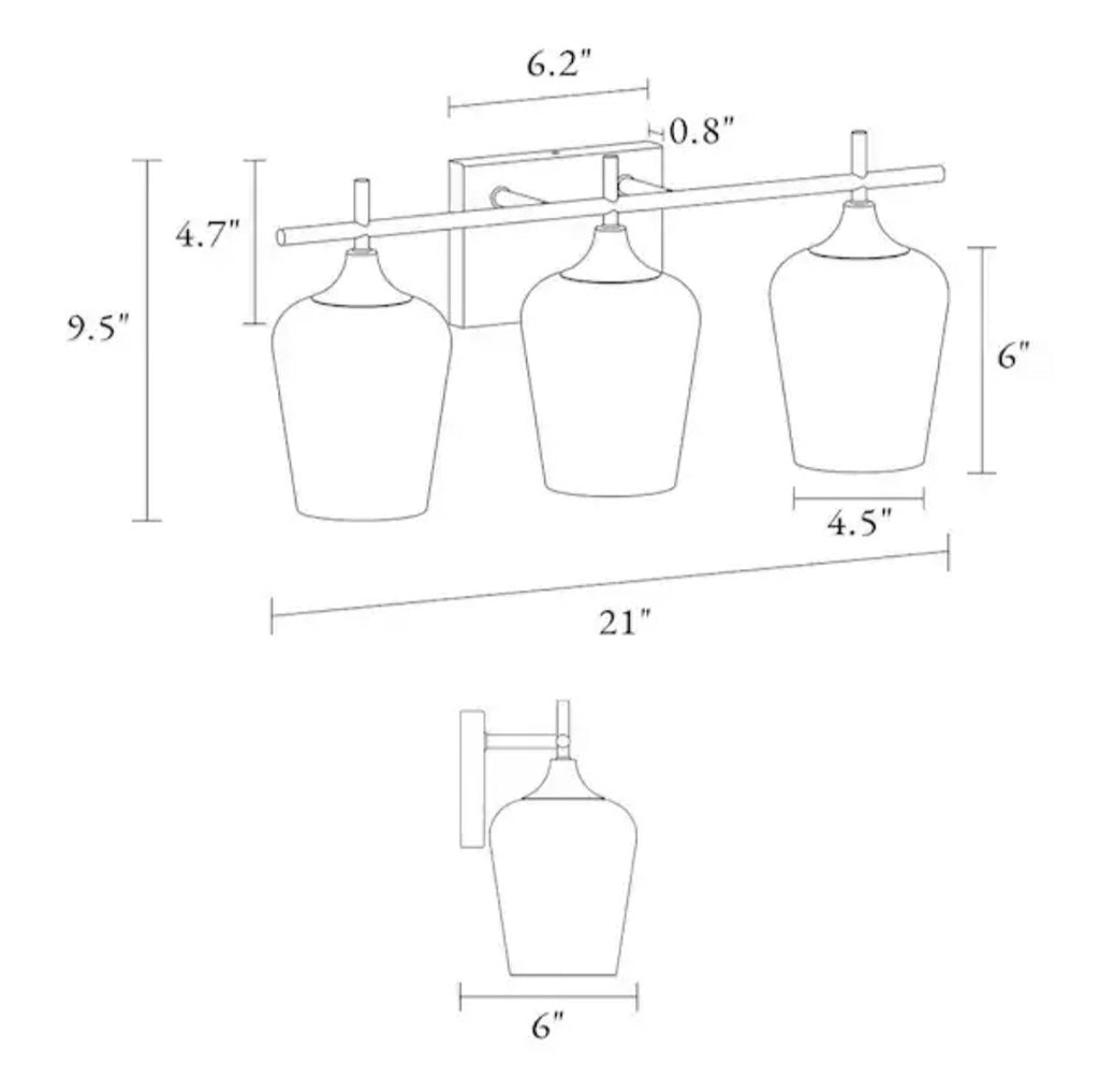 The Uolfin 21 in. 3-Light Modern Industrial Black Vanity Light with Goblet Shades is a stylish and functional lighting fixture designed for bathrooms. With a sleek black metal construction and a 21-inch diameter, this vanity light exudes a modern and industrial look. The corded light features downwards light direction and LED technology, making it energy-efficient and dimmable for customizable lighting options. Ideal for indoor spaces, this 21st-century piece from Uolfin adds a touch of sophistication to any bathroom decor.
