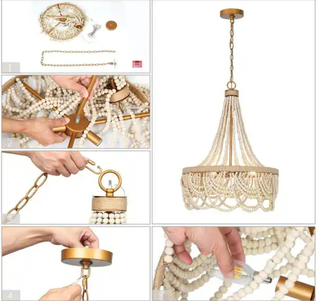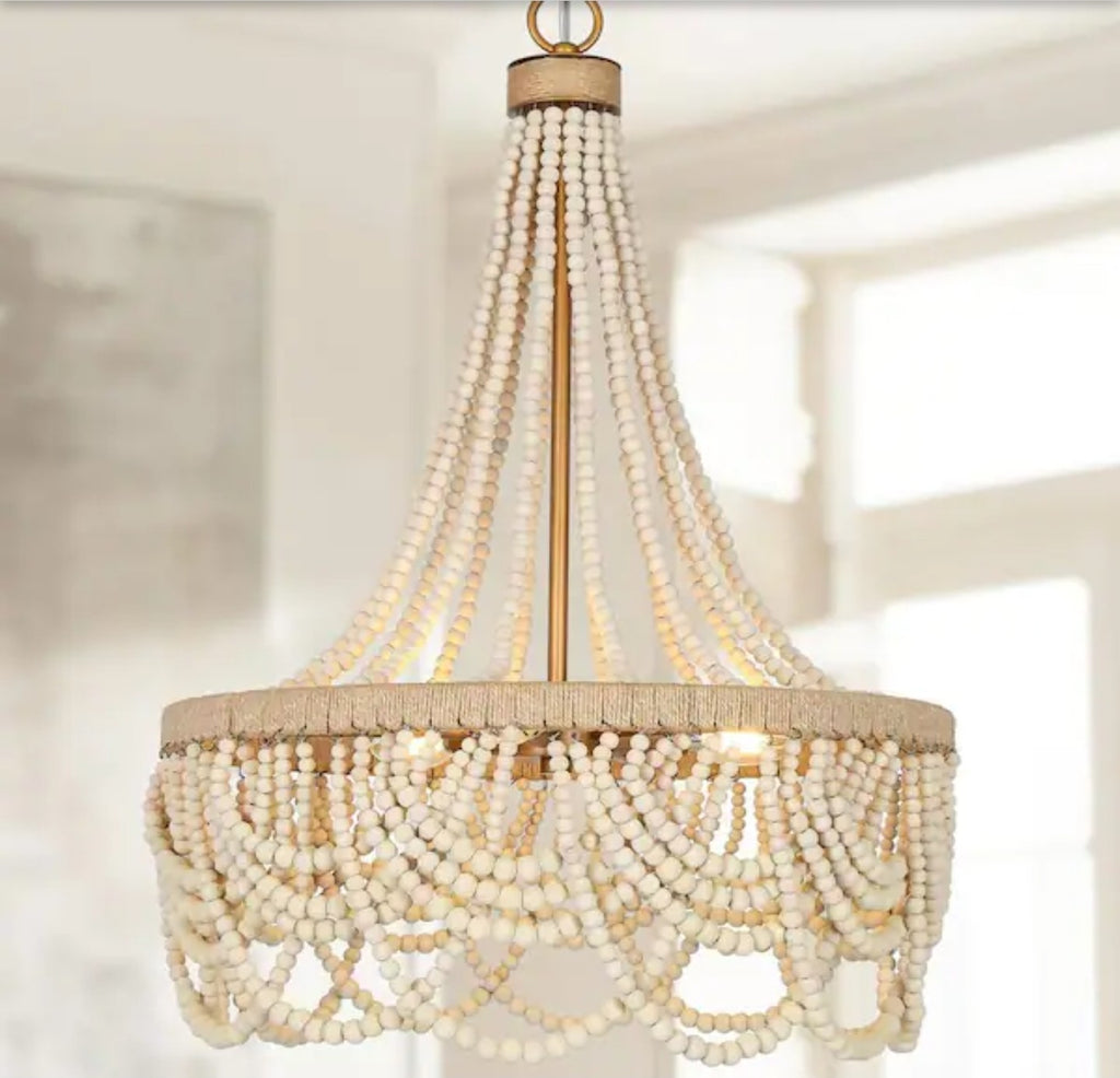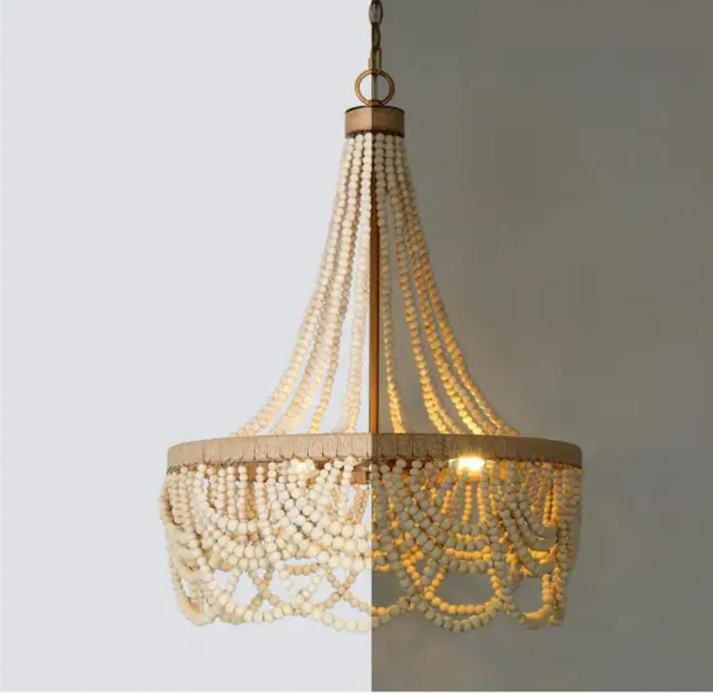 The Uolfin Modern Farmhouse Empire Beaded Chandelier is a stylish and elegant lighting fixture designed for various rooms in your home. This 3-light chandelier features an antique gold finish with beaded decorative accents, giving it a modern farmhouse look. With a maximum hanging length of 59 inches and a minimum hanging length of 32 inches, it is suitable for use in the bedroom, dining room, foyer, kitchen island, and living room. The chandelier is hardwired and includes hardware for easy installation. This fixture is perfect for adding ambiance and style to any space in your home.