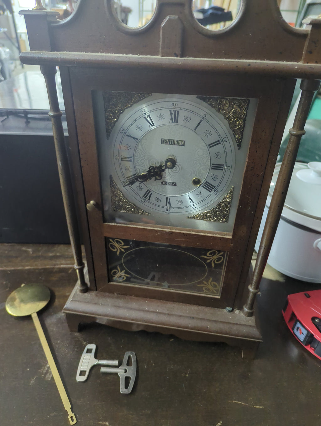 Vintage Centurion 35-Day Wind-Up Pendulum Mantel Clock w/ Keys