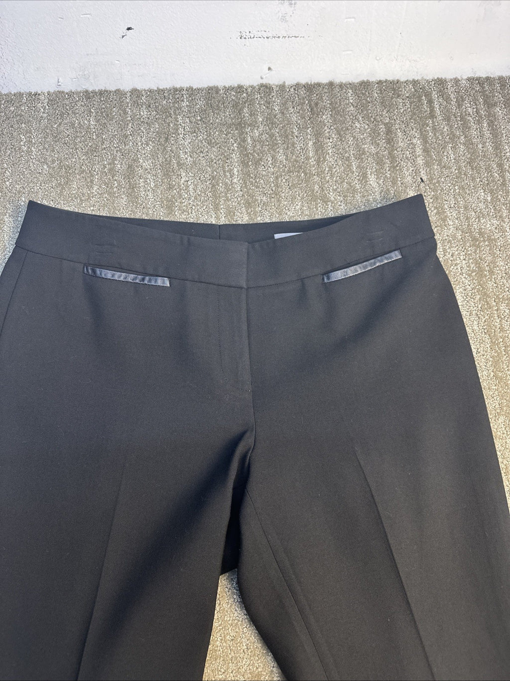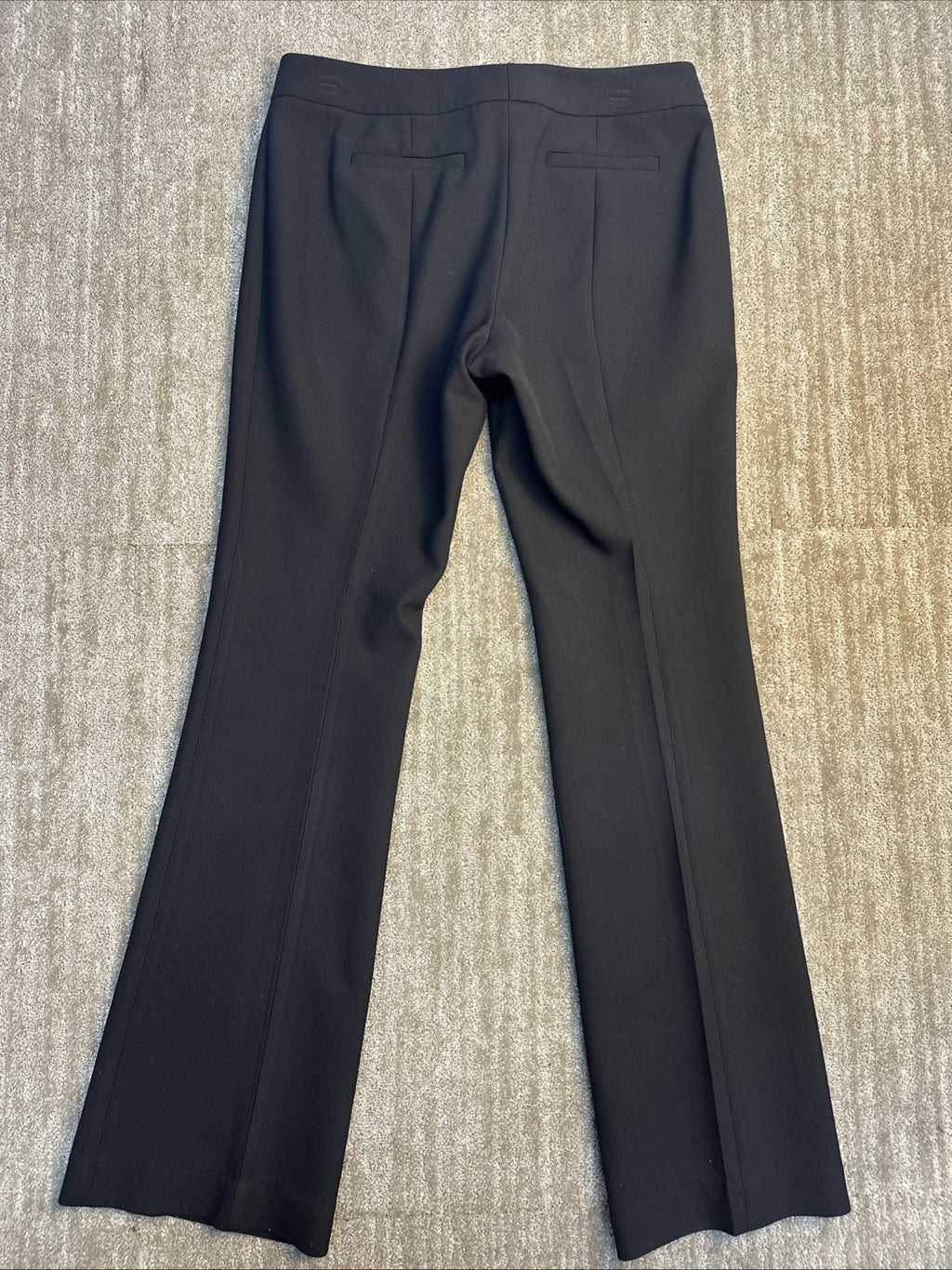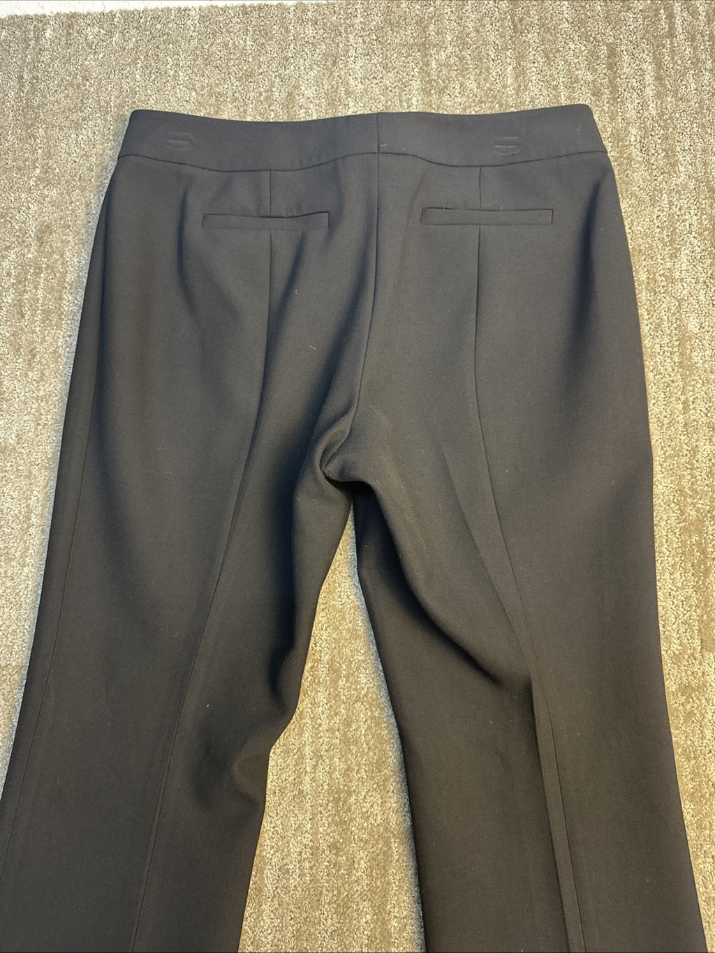 The Women’s Classiques Entier Black Dress Pants in size 8 feature a solid pattern with faux pockets and a zip closure. Designed for formal, dressy, or business occasions, these dress pants are made from polyester material and have a mid-rise fit. The straight leg style and 34 inch inseam make them a timeless and versatile addition to any woman's wardrobe. These pants are suitable for all seasons and can be dry-cleaned for easy care. Rise 9.5in. **Leg Opening 9.5in**
