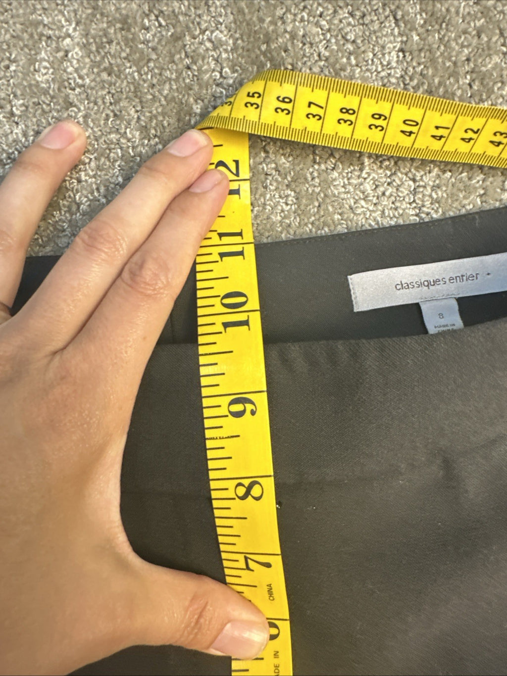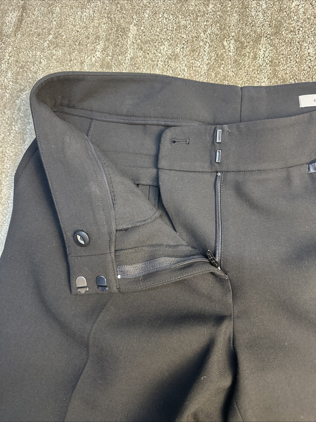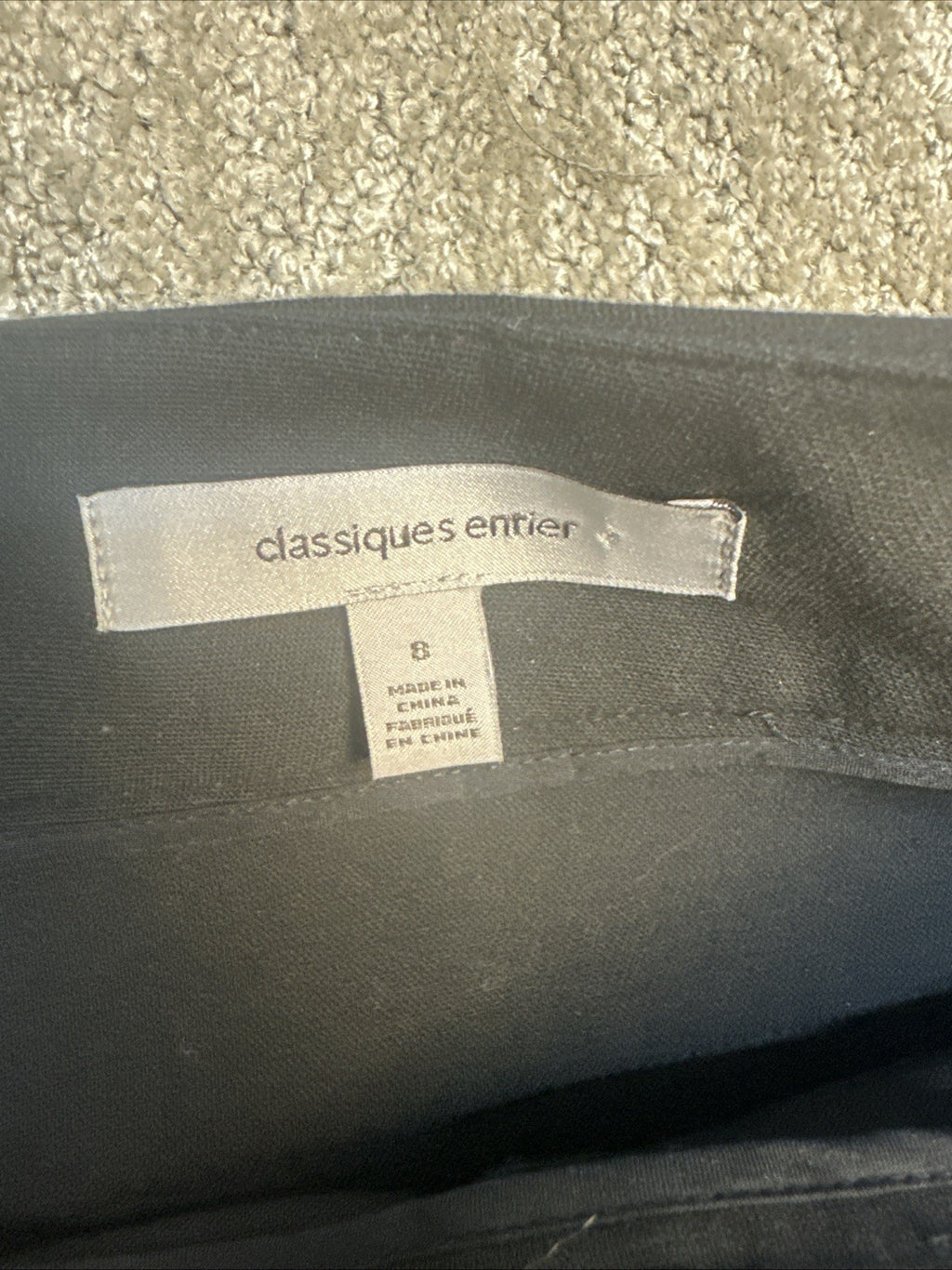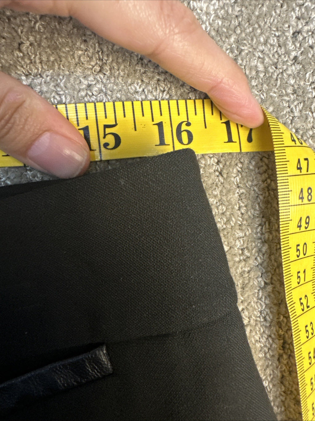 The Women’s Classiques Entier Black Dress Pants in size 8 feature a solid pattern with faux pockets and a zip closure. Designed for formal, dressy, or business occasions, these dress pants are made from polyester material and have a mid-rise fit. The straight leg style and 34 inch inseam make them a timeless and versatile addition to any woman's wardrobe. These pants are suitable for all seasons and can be dry-cleaned for easy care. Rise 9.5in. **Leg Opening 9.5in**