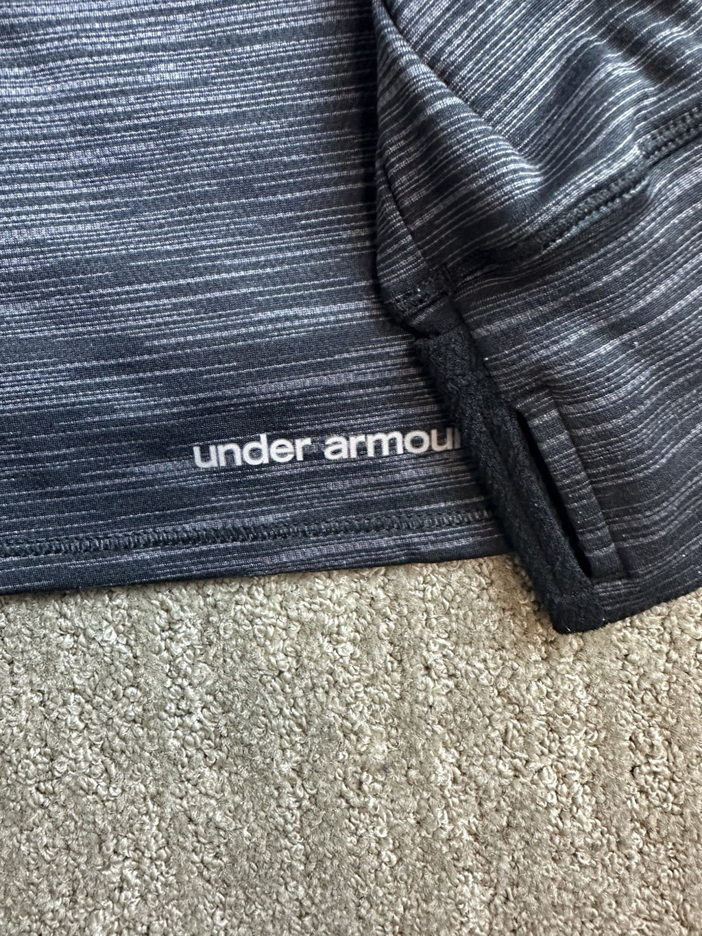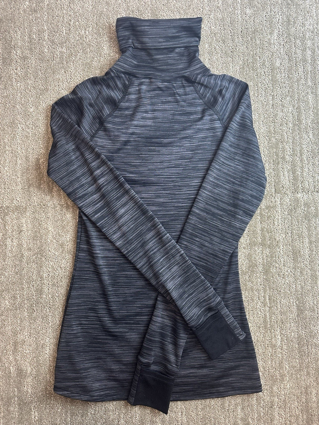 The Women's Under Armour All Season Gear Turtleneck with Thumbholes is a versatile and functional piece of activewear suitable for all seasons. The medium fitted design provides a slim fit for a comfortable and supportive feel, while the thermal fabric wash ensures warmth during active movements. The black and grey color combination adds a stylish touch to this pullover top, perfect for women who are looking for both style and performance in their activewear wardrobe.