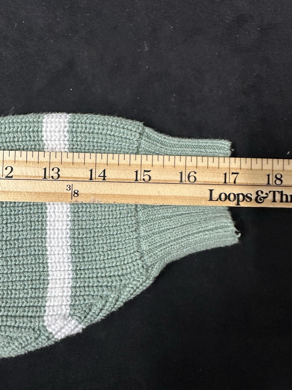 This Women's Hollister Pullover Striped V-Neck Crop Long Sleeve Sweater in size XS is a stylish and cozy addition to any wardrobe. Made from tight-knit cotton, this sweater features a green striped pattern, a V-neckline, and long sleeves, perfect for casual occasions in the winter, autumn, or spring. With a regular fit and pullover style, this sweater is easy to care for with machine washable instructions, making it both fashionable and convenient for everyday wear.